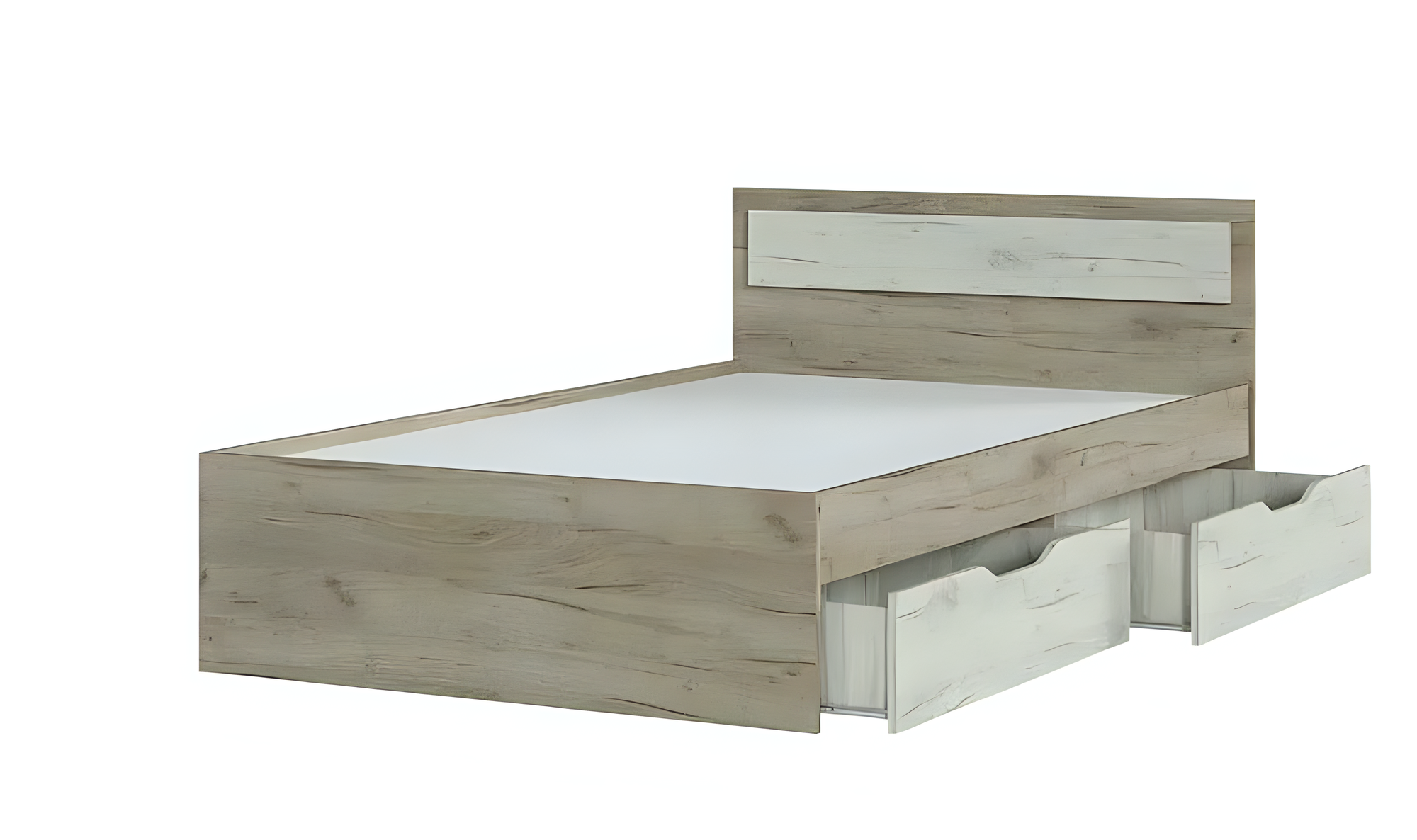 Кровать 140х200 полутороспальная с ящиками, Гармония КР 605, Дуб Крафт Белый / Дуб Крафт Серый