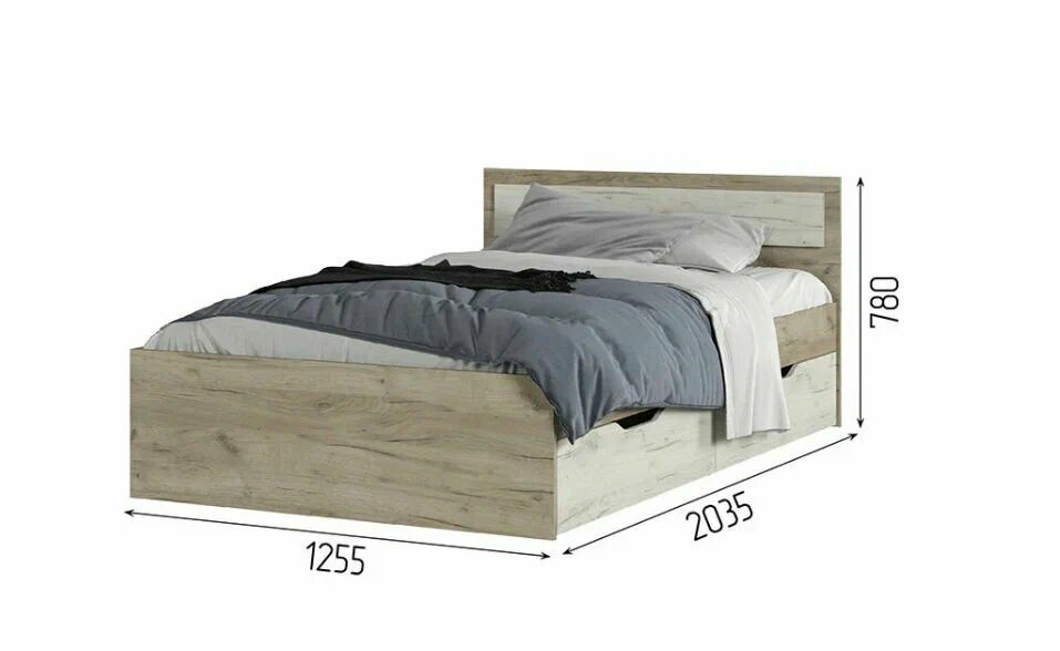 Кровать гармония КР 606 с ящиками, ЛДСП, дуб крафт белый/дуб крафт серый, 120х200 см информация:
