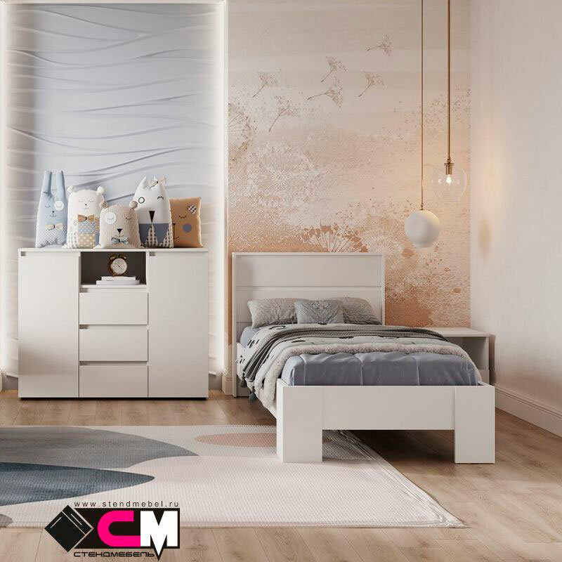 Кровать МФ Стендмебель Хелен КР 01 0,9 белый, ЛДСП, ортопедические ламели, односпальная 17 687 ₽