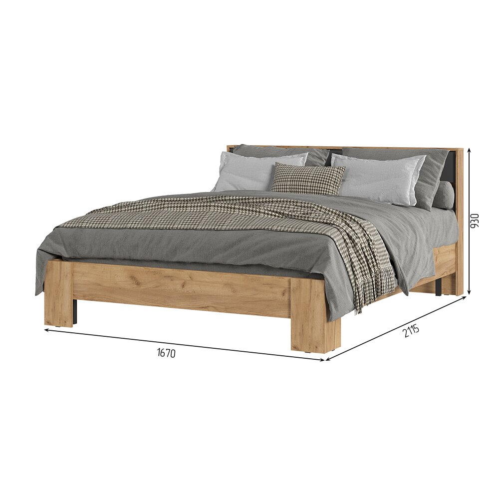 Кровать 1.6х2.0 двухспальная с основанием серый графит/дуб крафт золото ЛДСП/ДСП информация: