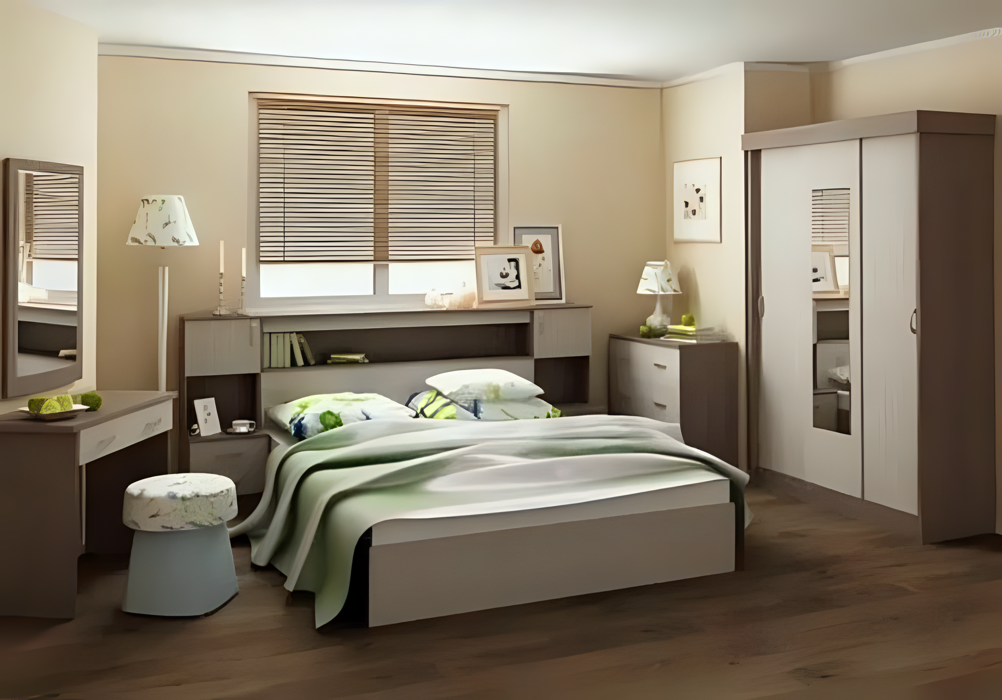 Кровать с прикроватным блоком Стендмебель Бася КР 552 (235х102х223см) шимо темный-шимо светлый