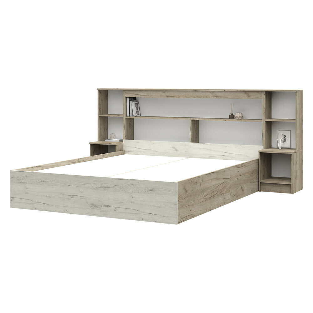 Кровать 160х200 двуспальная, Басса КР 558, Дуб Крафт Белый / Дуб Крафт Серый