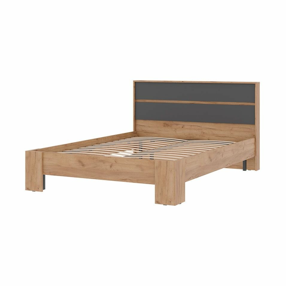 Кровать 1.6х2.0 двухспальная с основанием серый графит/дуб крафт золото ЛДСП/ДСП 18 918 ₽