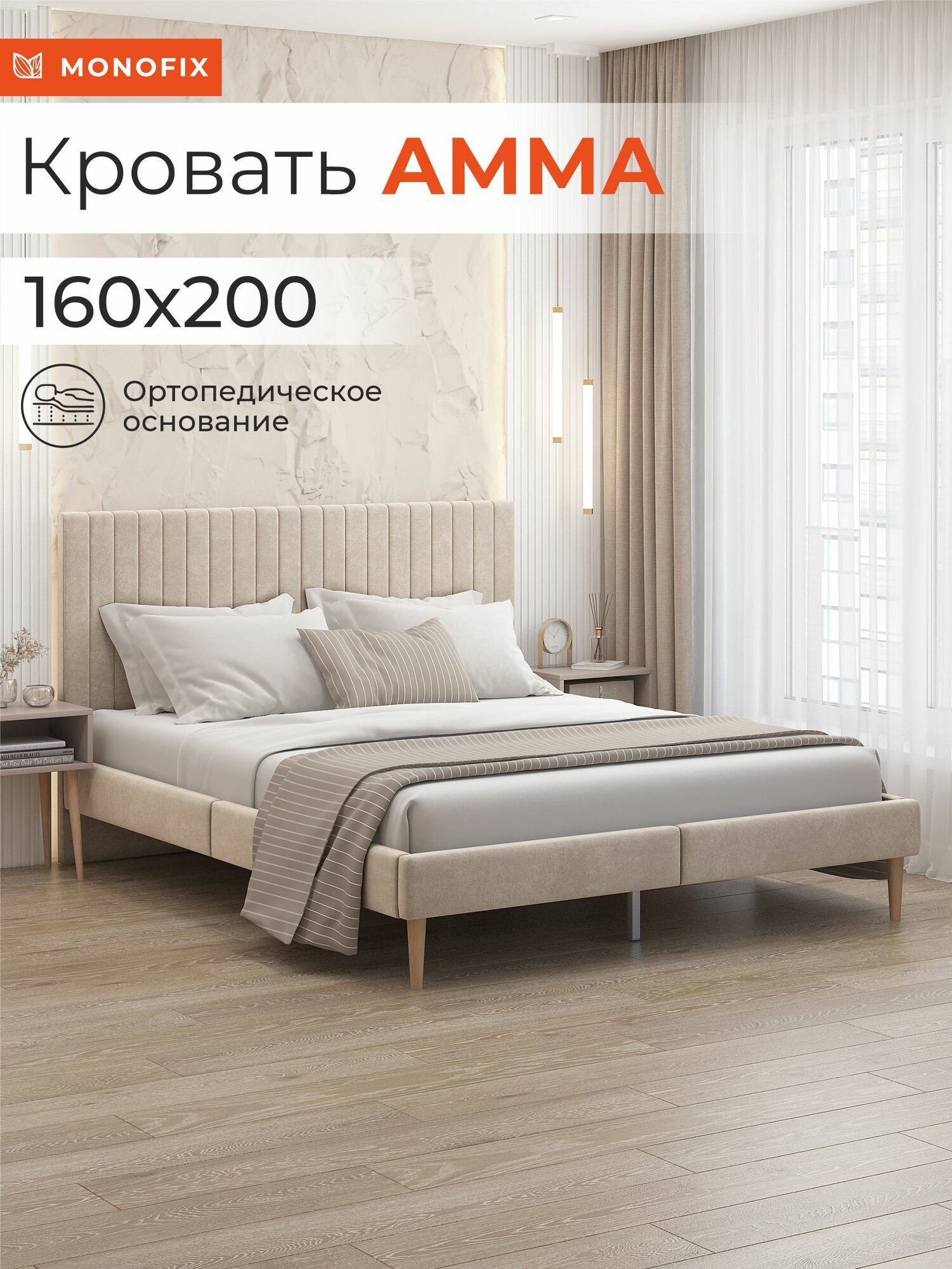 10 цен на Кровать MONOFIX амма двуспальная, велюр бежевый (№18), 160х200