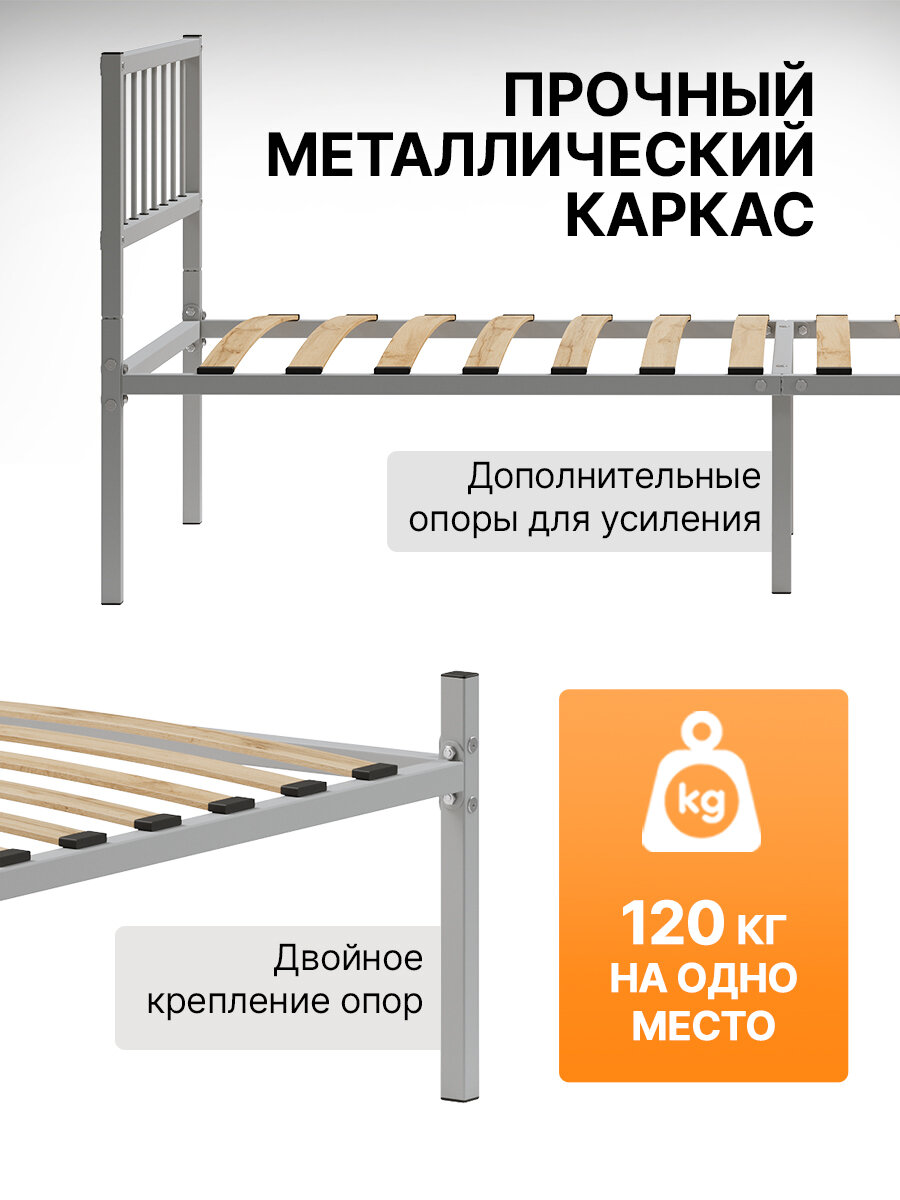 10 цен на Кровать металлическая Металика В3+В3 90х200 серая с держателями для матраса и доп. опорами