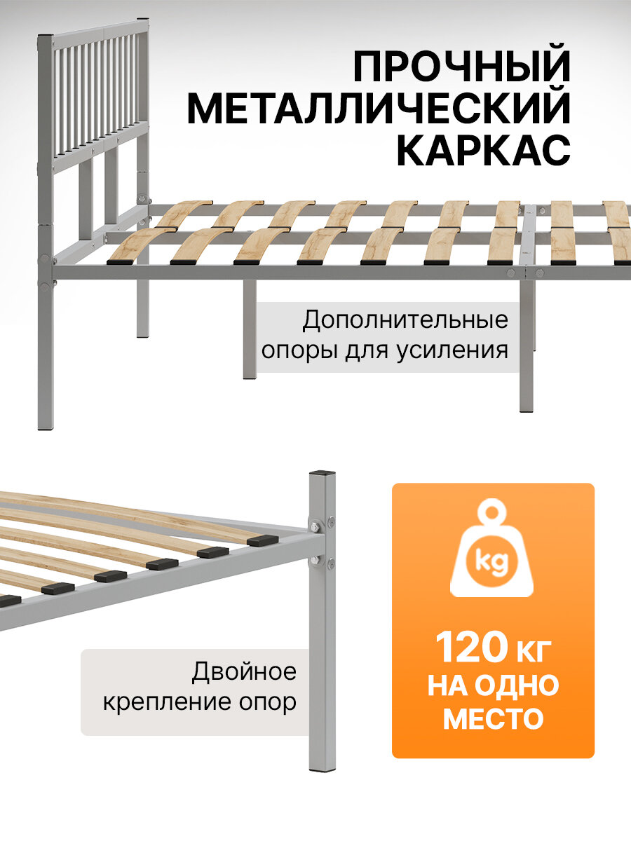 Кровать металлическая Металика Г4+Г4 полутораспальная 120х200 серая с держателями для матраса и доп. опорами 18 630 ₽