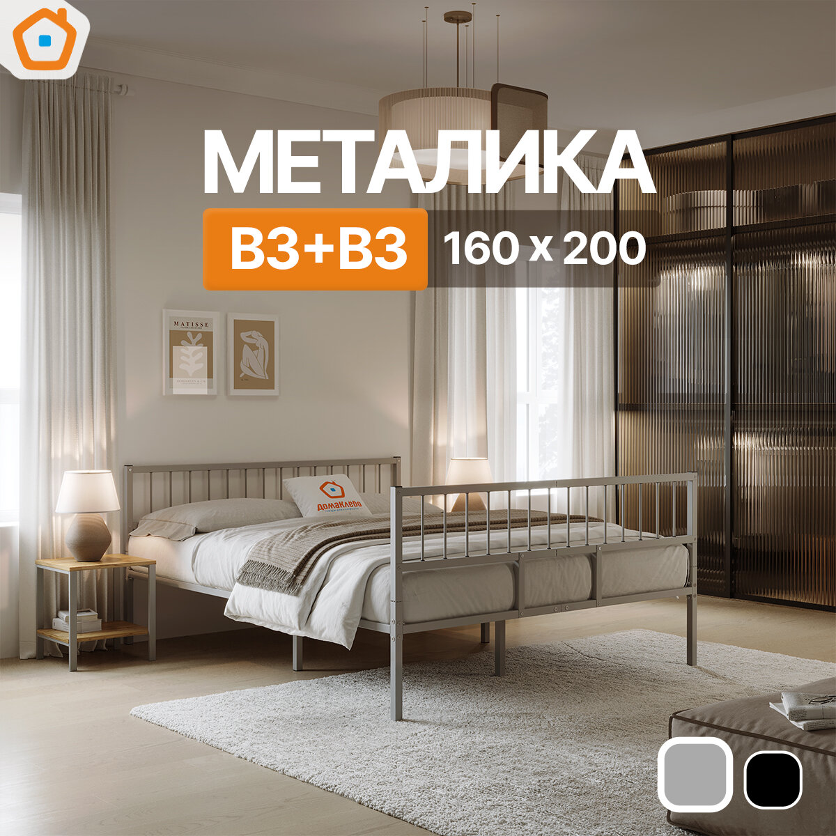 10 цен на Кровать металлическая Металика В3+В3 160х200 серая с держателями для матраса и доп. опорами