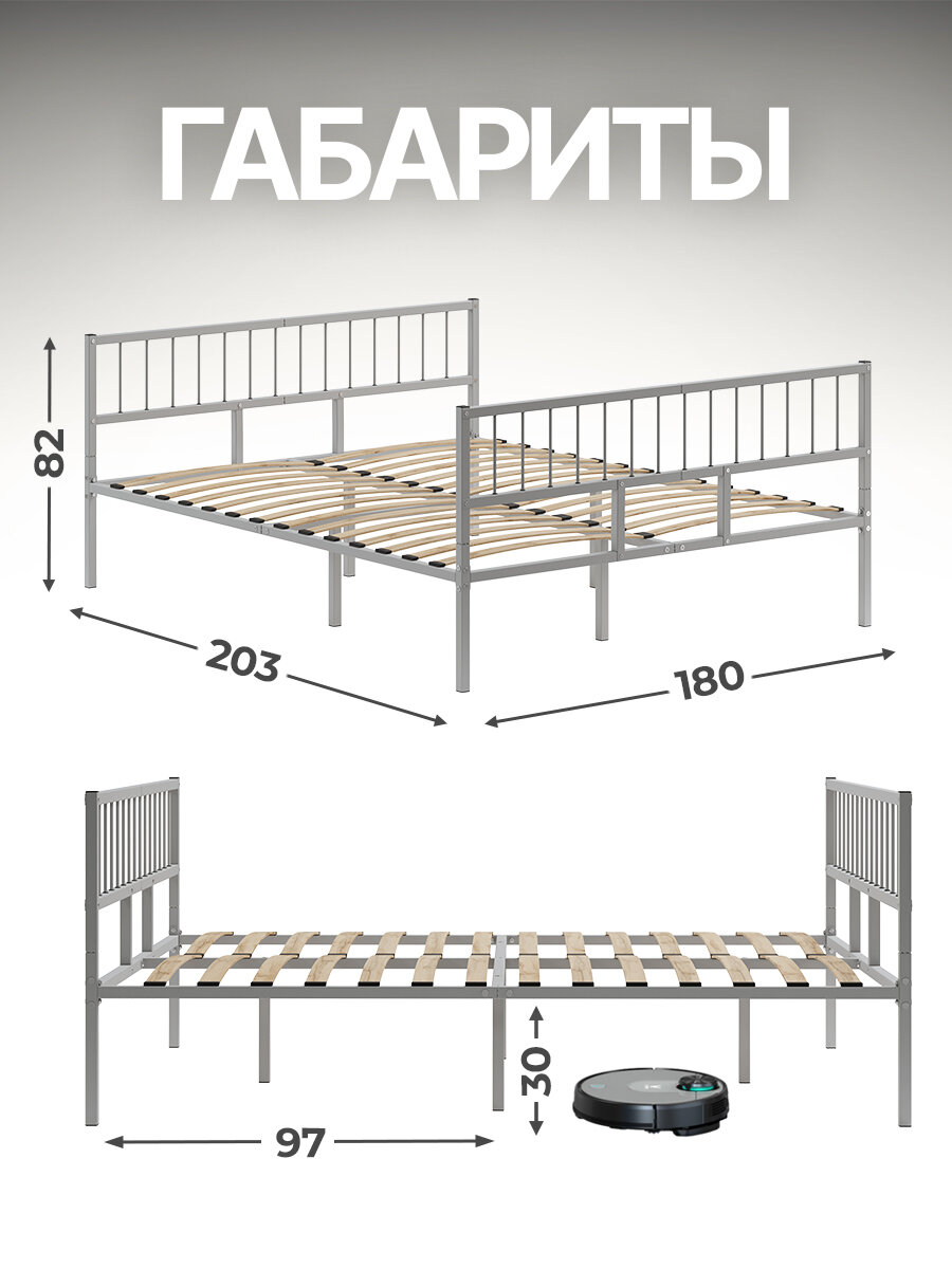 10 цен на Кровать металлическая Металика В3+В3 180х200 серая с держателями для матраса и доп. опорами