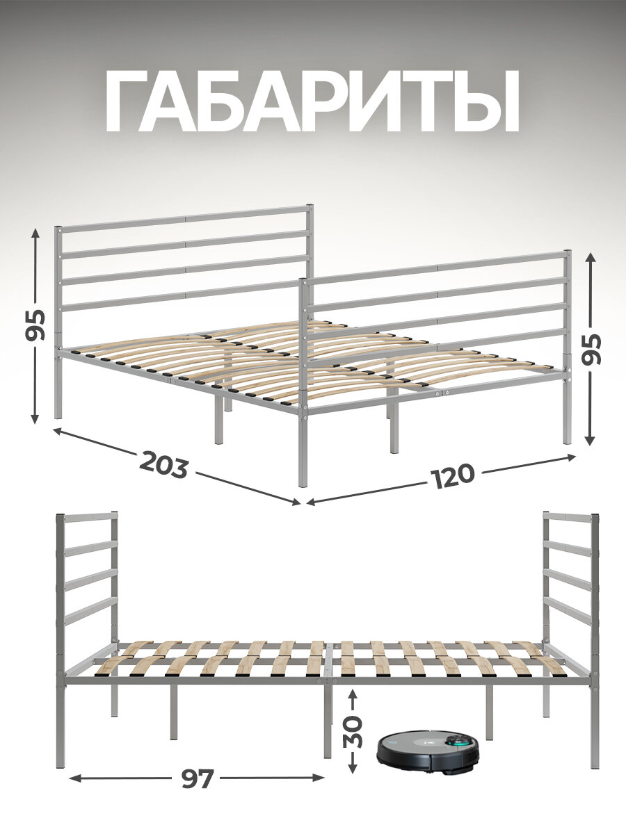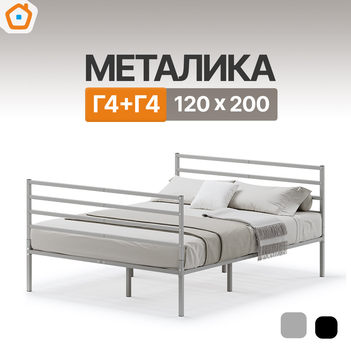 Кровать металлическая Металика Г4+Г4 полутораспальная 120х200 серая с держателями для матраса и доп. опорами информация: