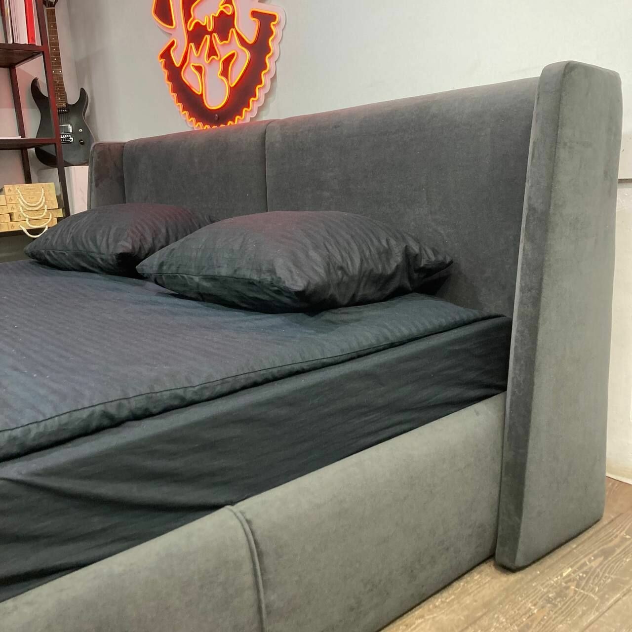 Кровать двуспальная «Касл» Банда мастеров, графит антивандальный велюр, 180x200см информация: