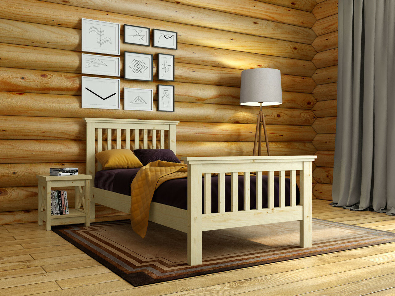 Кровать 140х200 см полутороспальная деревянная в Скандинавском стиле 17 882 ₽