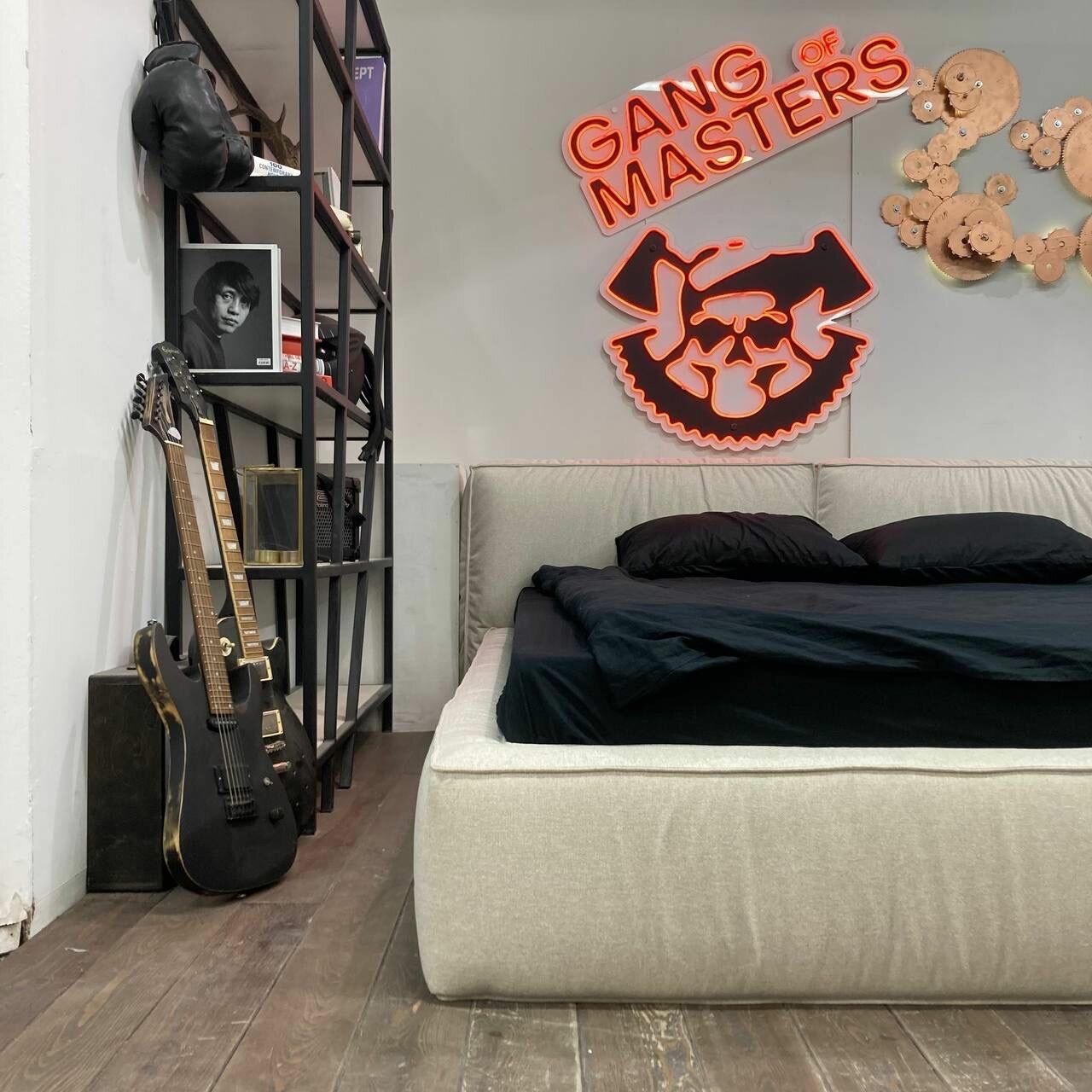 Кровать двуспальная «Онда» Банда мастеров, черный антивандальный велюр, 200x200см 65 100 ₽