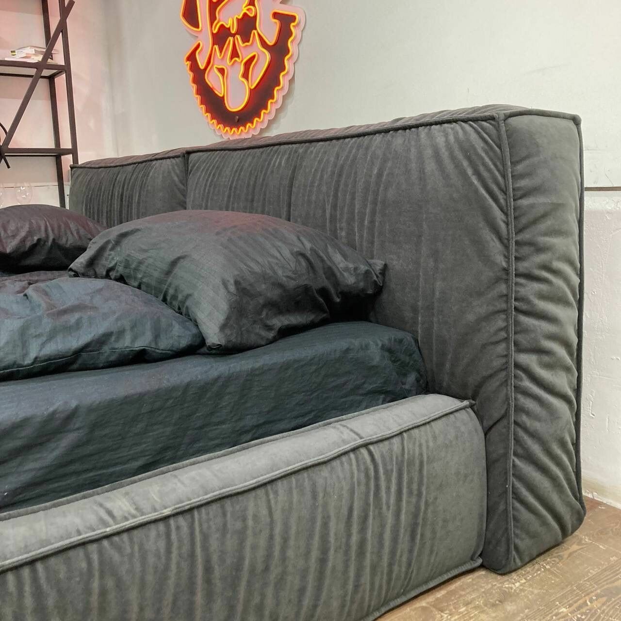 Кровать двуспальная «Онда» Банда мастеров, графит антивандальный велюр, 140x200см информация: