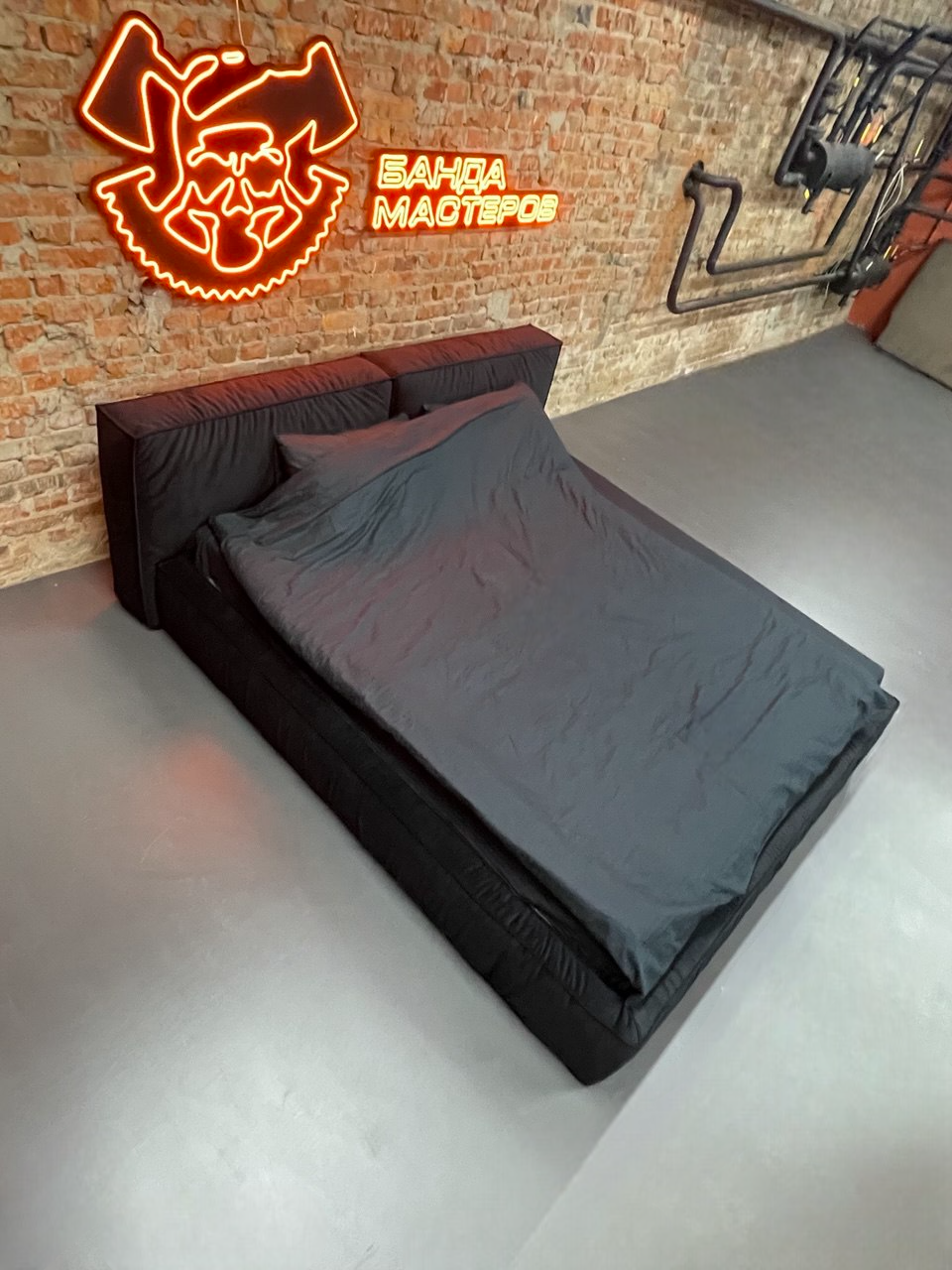 Отзывы на Кровать двуспальная «Онда» Банда мастеров, черный антивандальный велюр, 200x200см