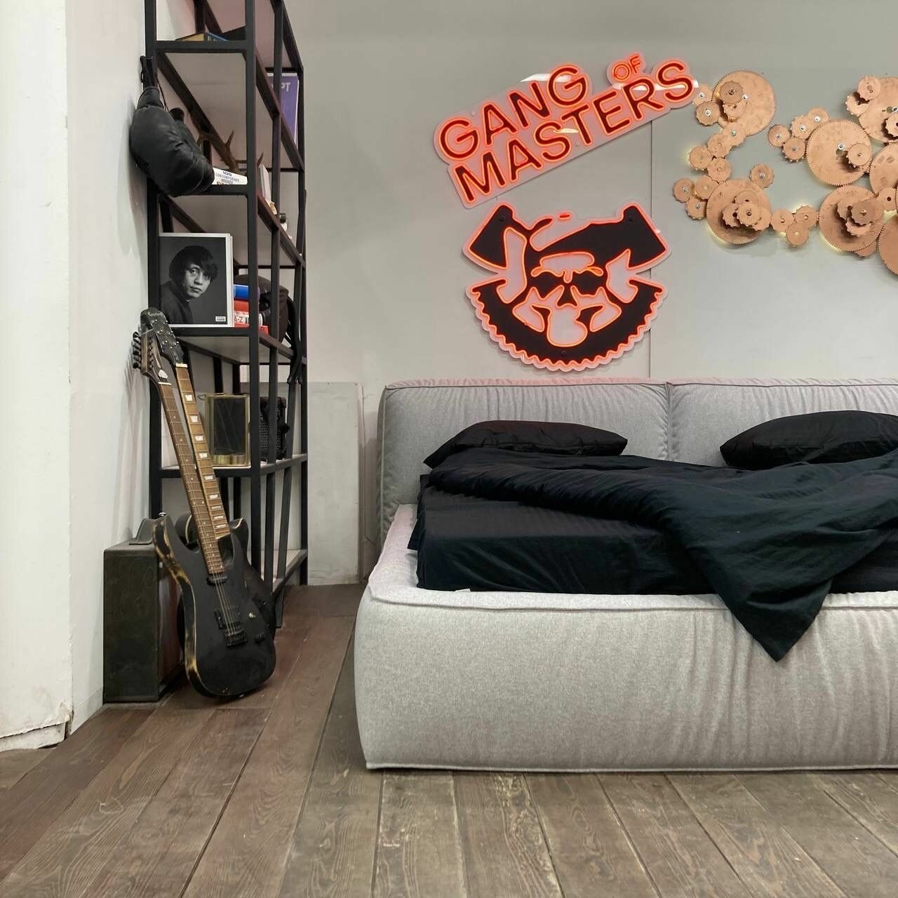 Кровать двуспальная «Онда» Банда мастеров, черный антивандальный велюр, 200x200см 65 100 ₽