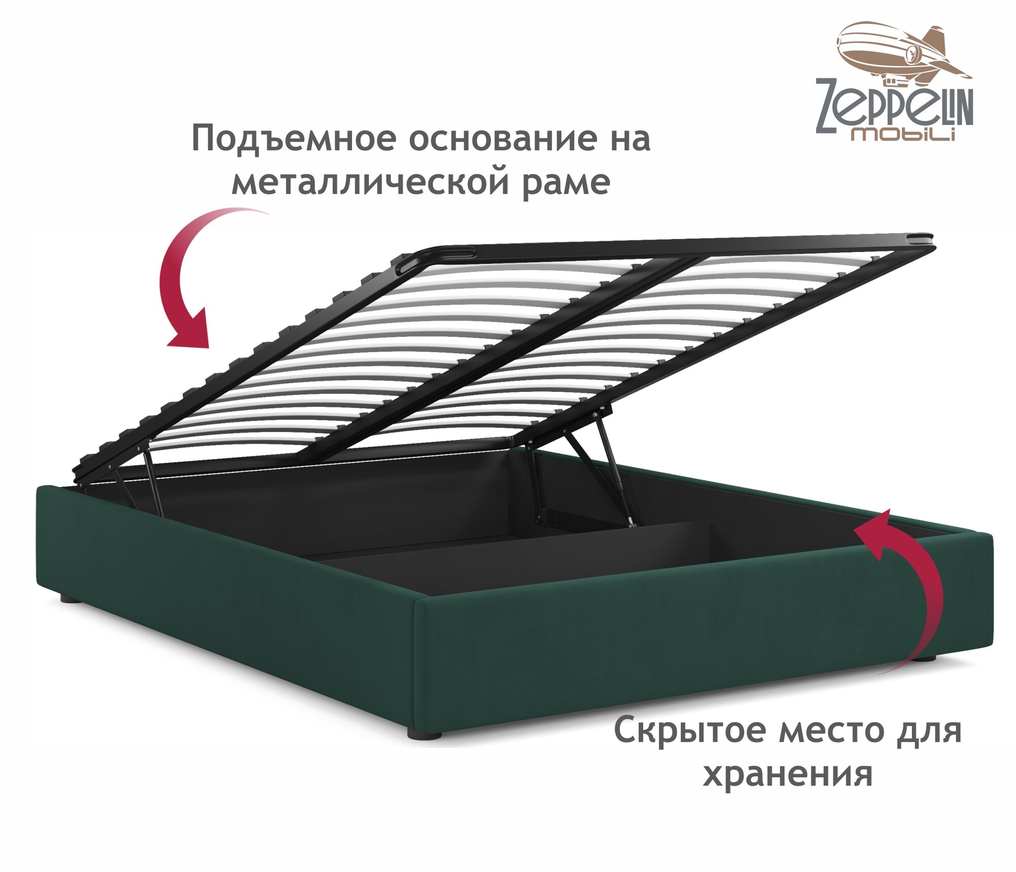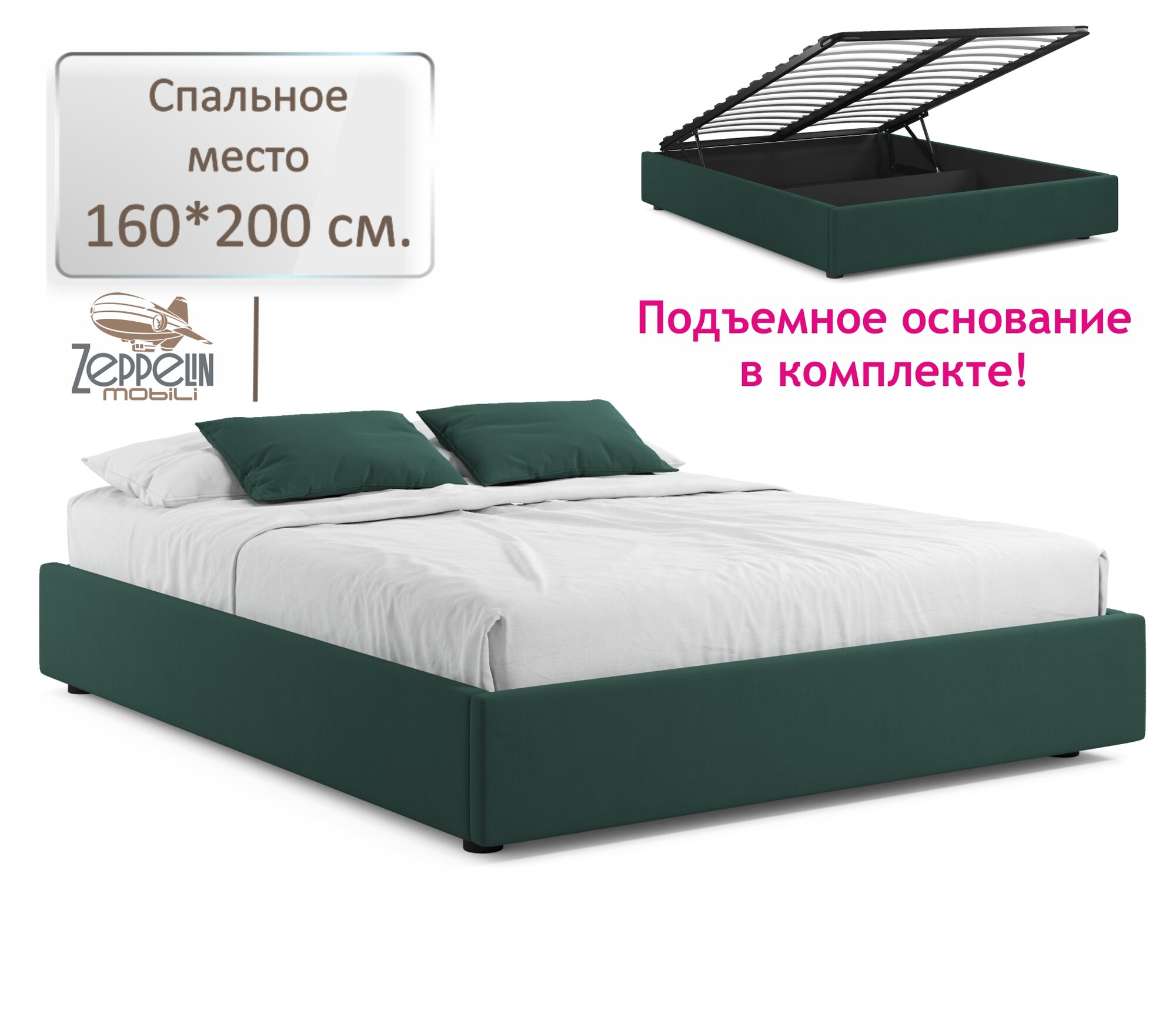 Отзывы на Кровать-софа Base 160x200 без изголовья с подъемником и ящиком Zeppelin Mobili мягкая двуспальная из зеленого велюра