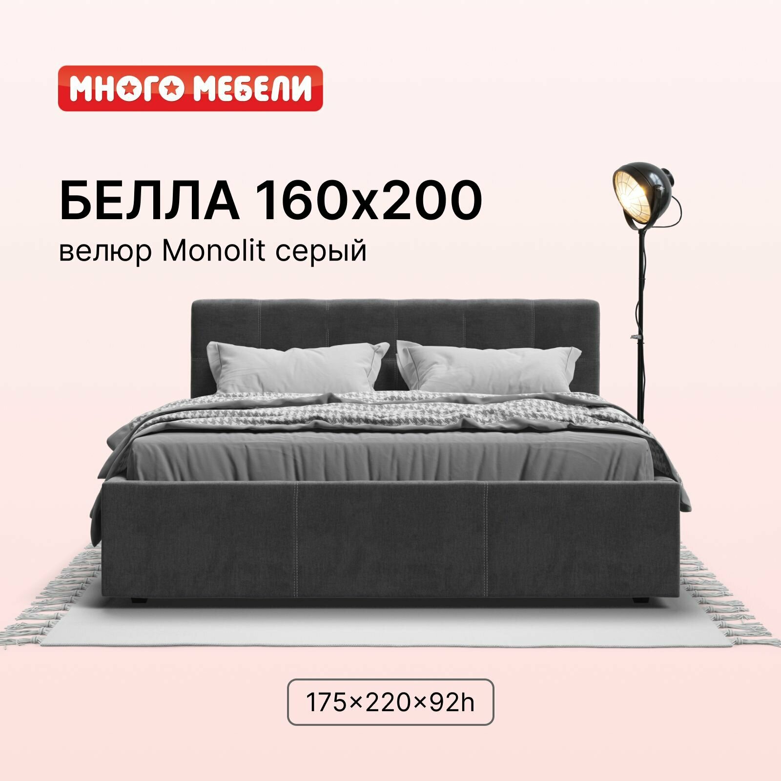 Отзывы на Двуспальная кровать Белла, с подъемным механизмом, велюр Monolit серый, 160х200 см