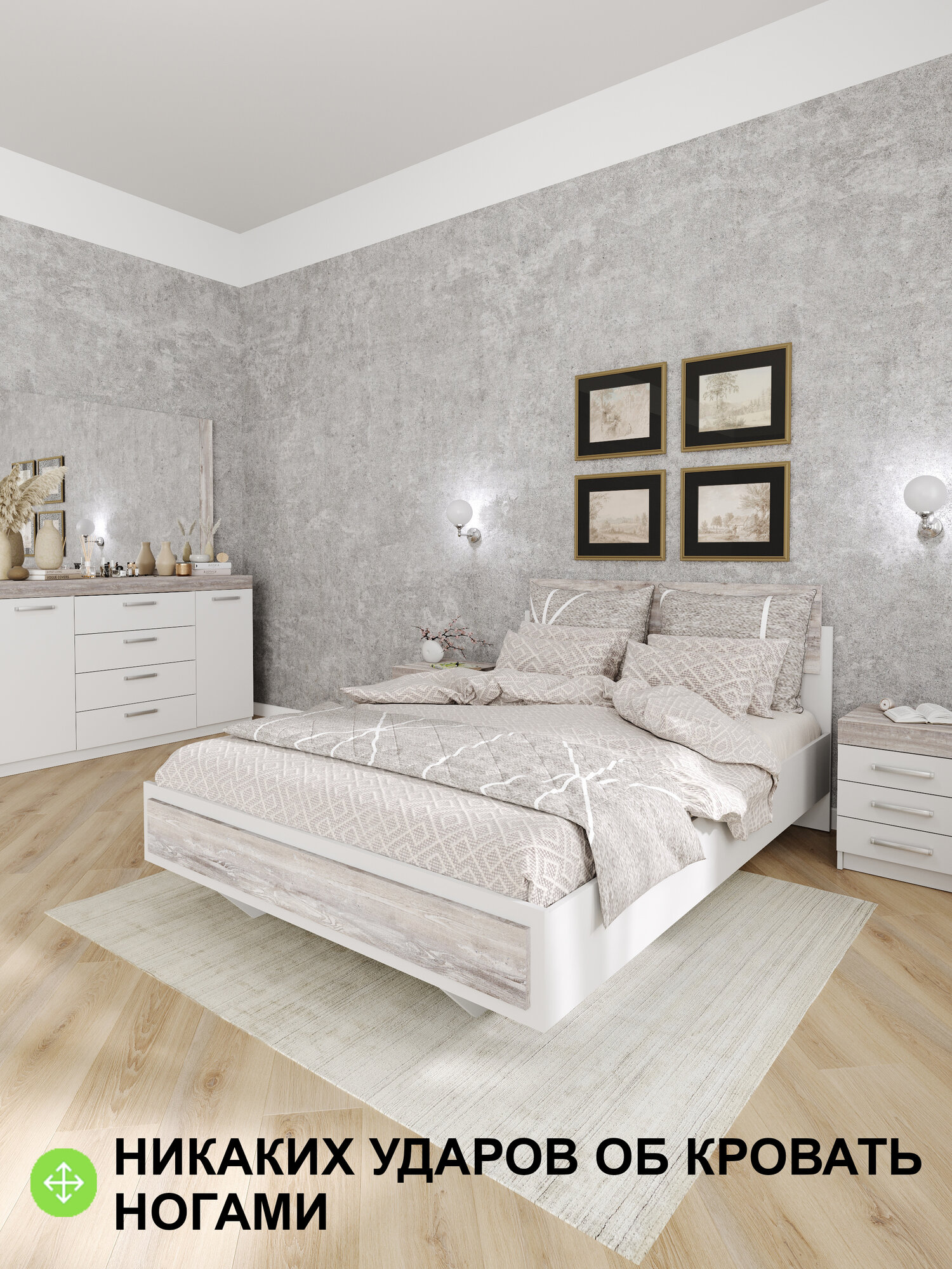 Отзывы на Кровать "Модерн" 1,4, В*Ш*Г (см) 95x144x205, ЛДСП, белый / сосна рокпорт