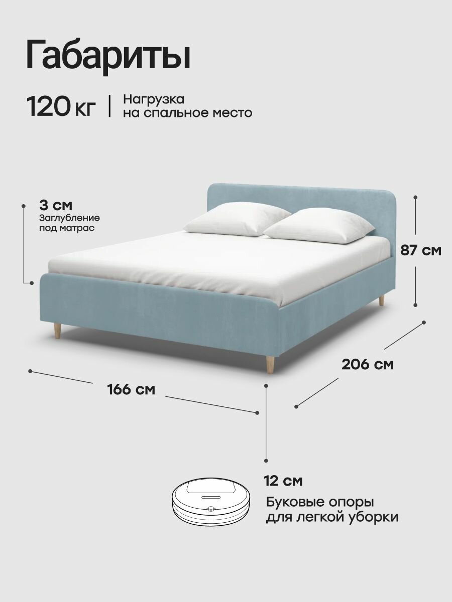 Двуспальная кровать 160х200 "LULL" с мягким изголовьем для дома, для спальни. Велюр голубой Dakota 18 23 073 ₽