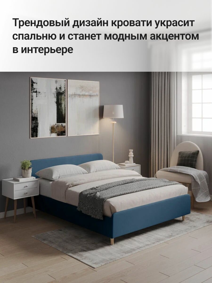 Двуспальная кровать 140х200 "LULL" с мягким изголовьем для дома, для спальни. Велюр синий Dakota 32 22 167 ₽