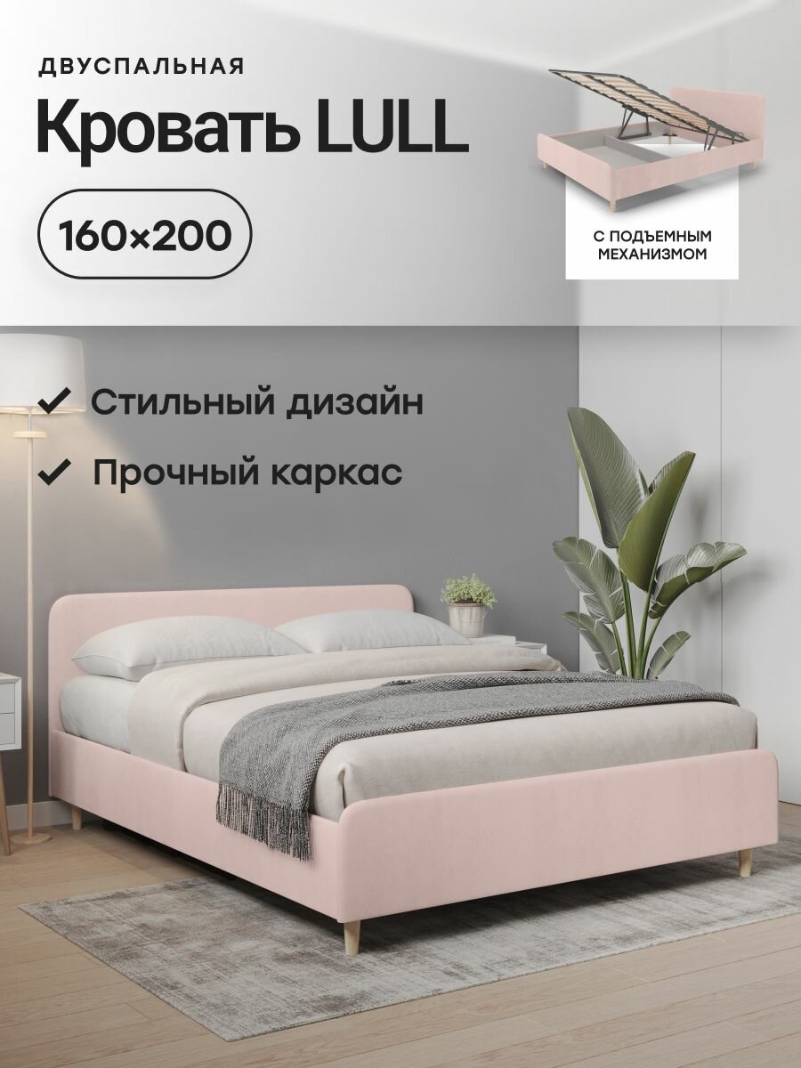Двуспальная кровать 160х200 с подъемным механизмом, "LULL" с мягким изголовьем. Велюр светло-розовый Dakota 25 информация: