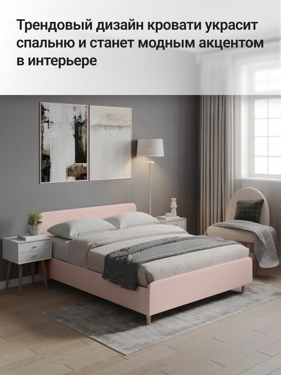 Двуспальная кровать 140х200 "LULL" с мягким изголовьем для дома, для спальни. Велюр розовый Dakota 26 22 167 ₽