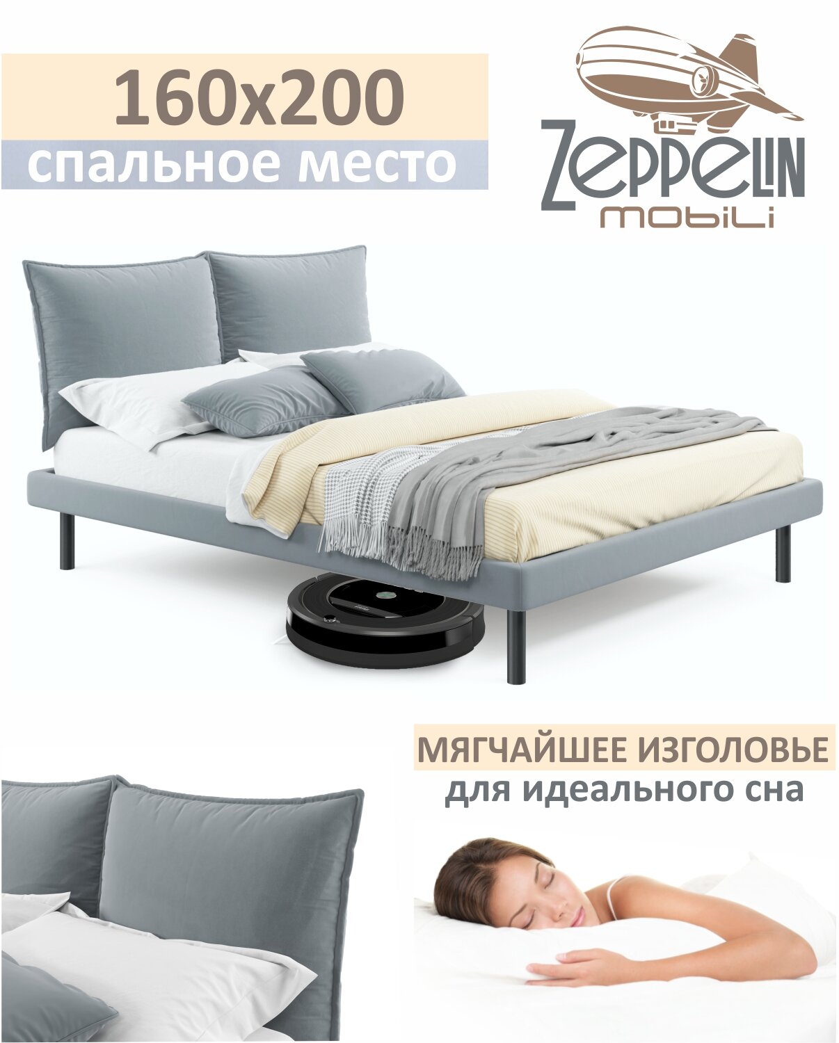 Отзывы на Кровать двуспальная Fly 160х200 серая Zeppelin с ортопедическим основанием, мягкая из велюра, ламели, на ножках