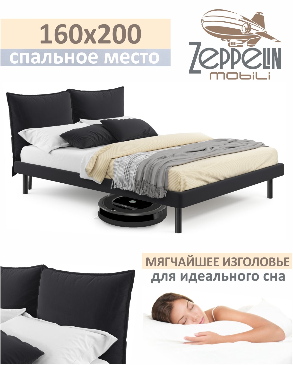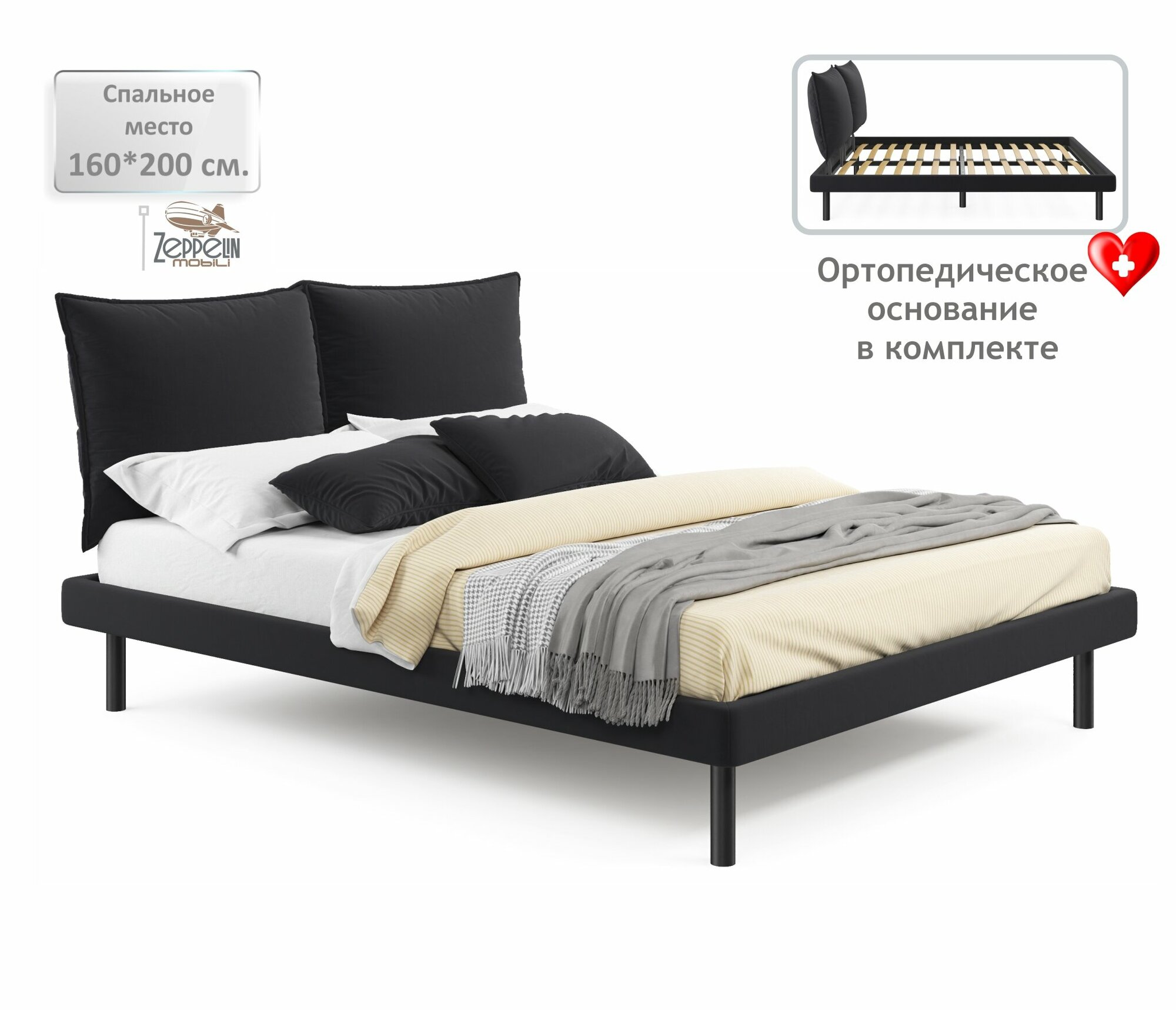 Отзывы на Кровать двуспальная Fly 160х200 темная Zeppelin с ортопедическим основанием, мягкая из велюра, ламели