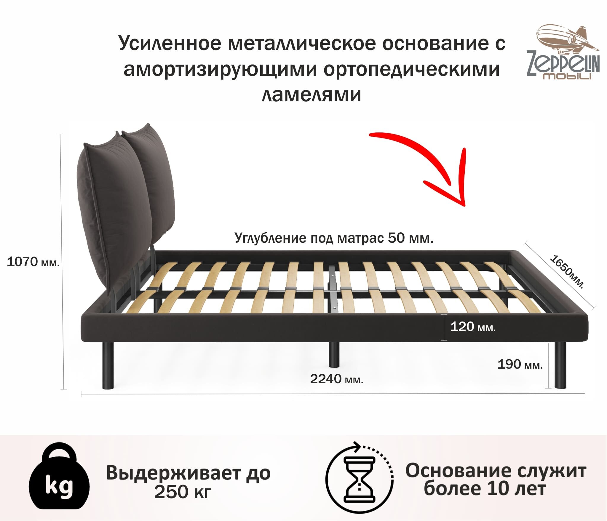 Отзывы на Кровать двуспальная Fly 160х200 шоколад Zeppelin с ортопедическим основанием, мягкая из велюра, ламели, на ножках