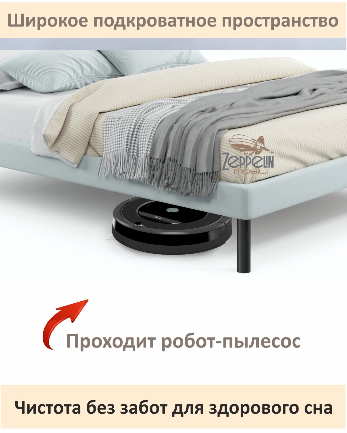 Кровать двуспальная Fly 140х200 бежевая Zeppelin с ортопедическим основанием, мягкая из велюра, ламели, на ножках 22 000 ₽