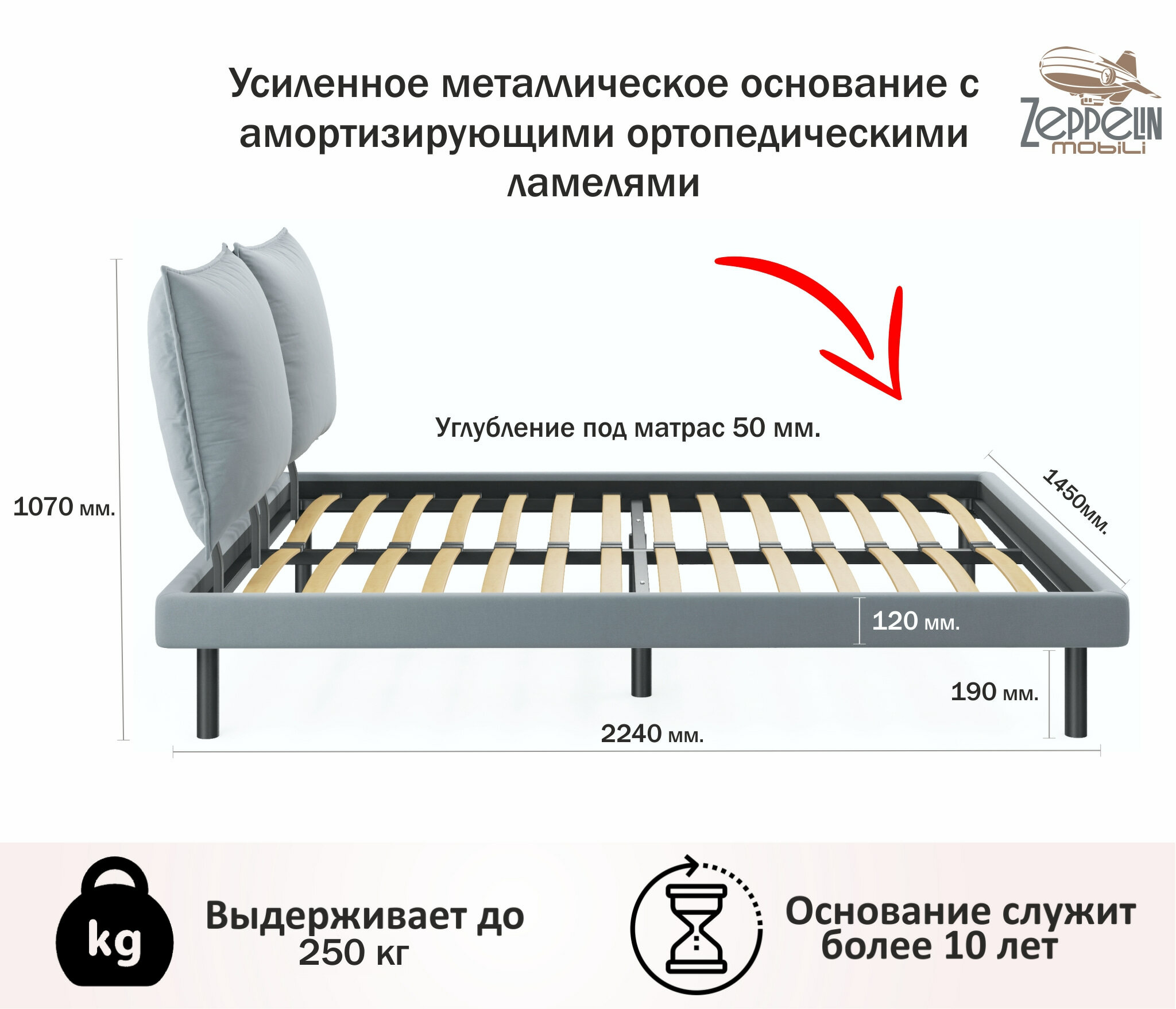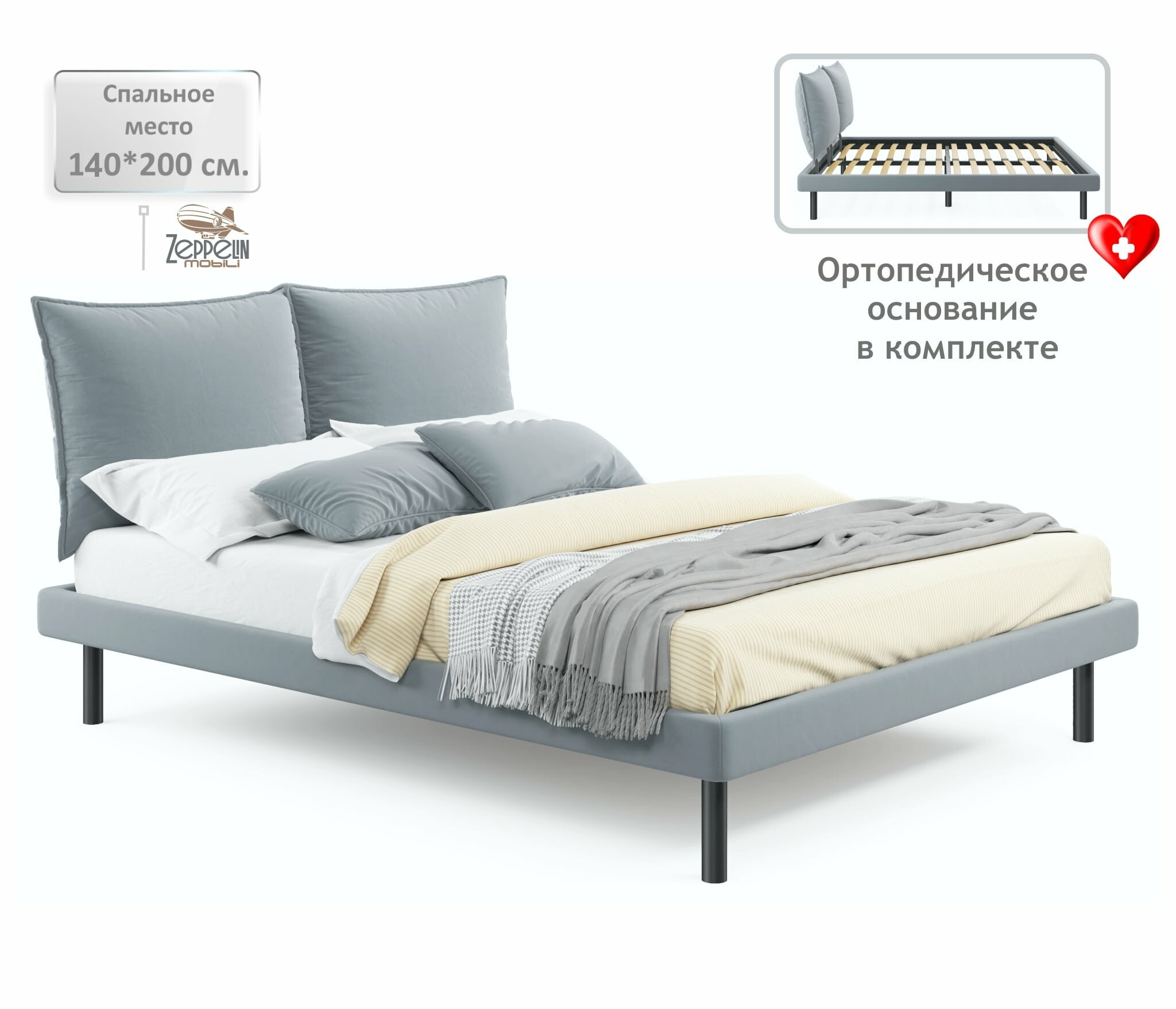Отзывы на Кровать двуспальная Fly 140х200 серая Zeppelin с ортопедическим основанием, мягкая из велюра, ламели, на ножках