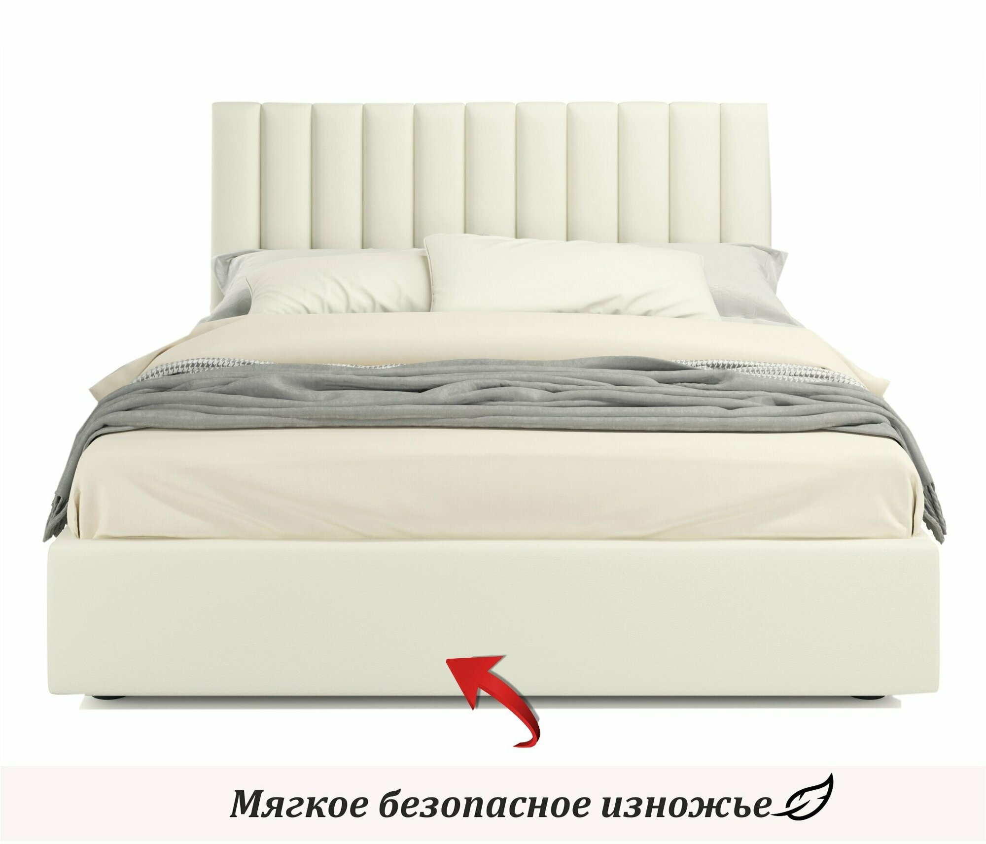 Отзывы на Двуспальная кровать Olivia 1400 бежевая Zeppelin с ортопедическим основанием, 140х200, мягкая из велюра, ламели