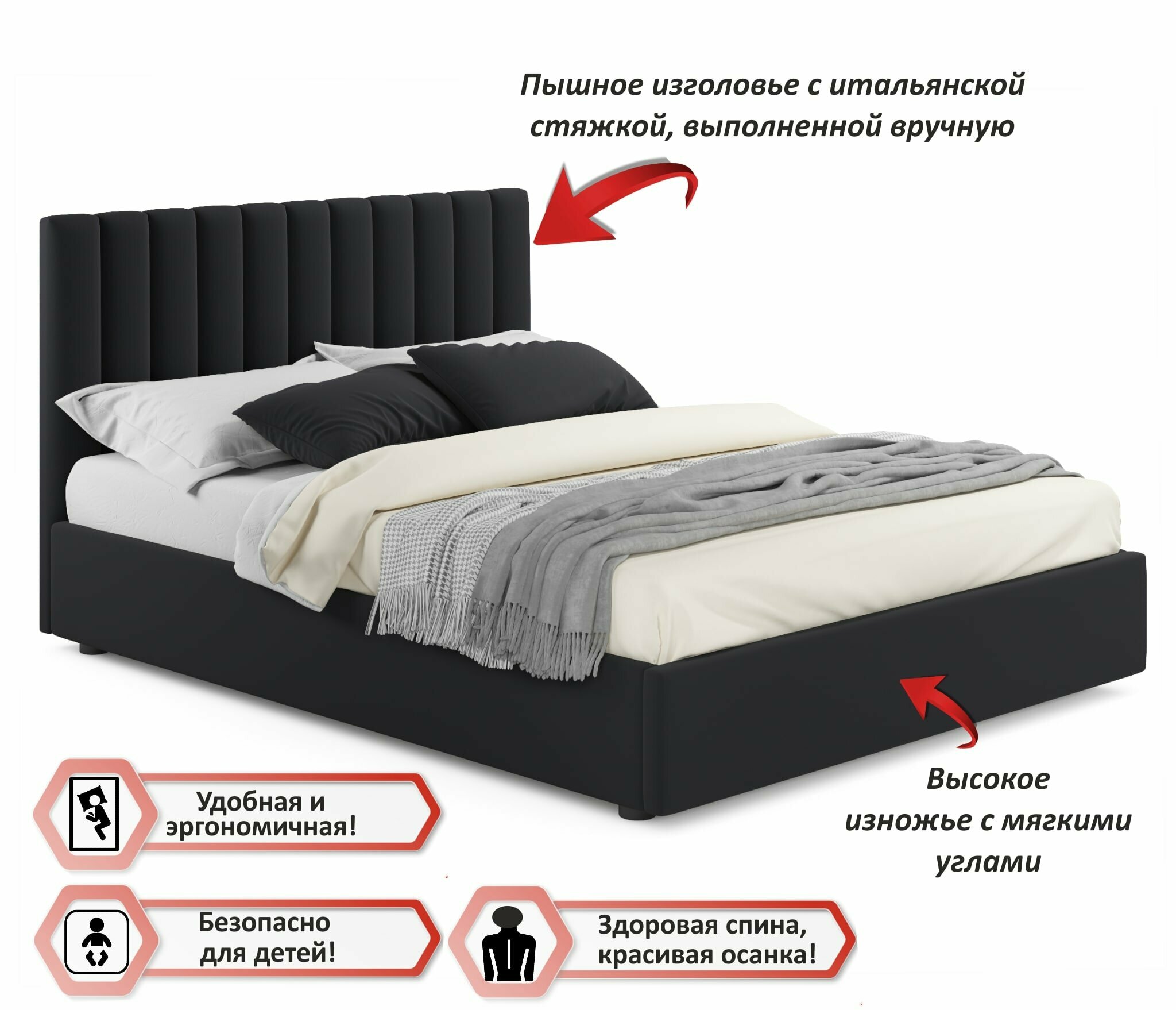 Отзывы на Двуспальная кровать Olivia 1400 темная Zeppelin с ортопедическим основанием, 140х200, мягкая из велюра, ламели