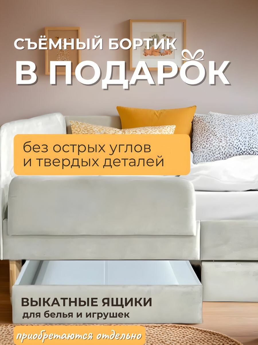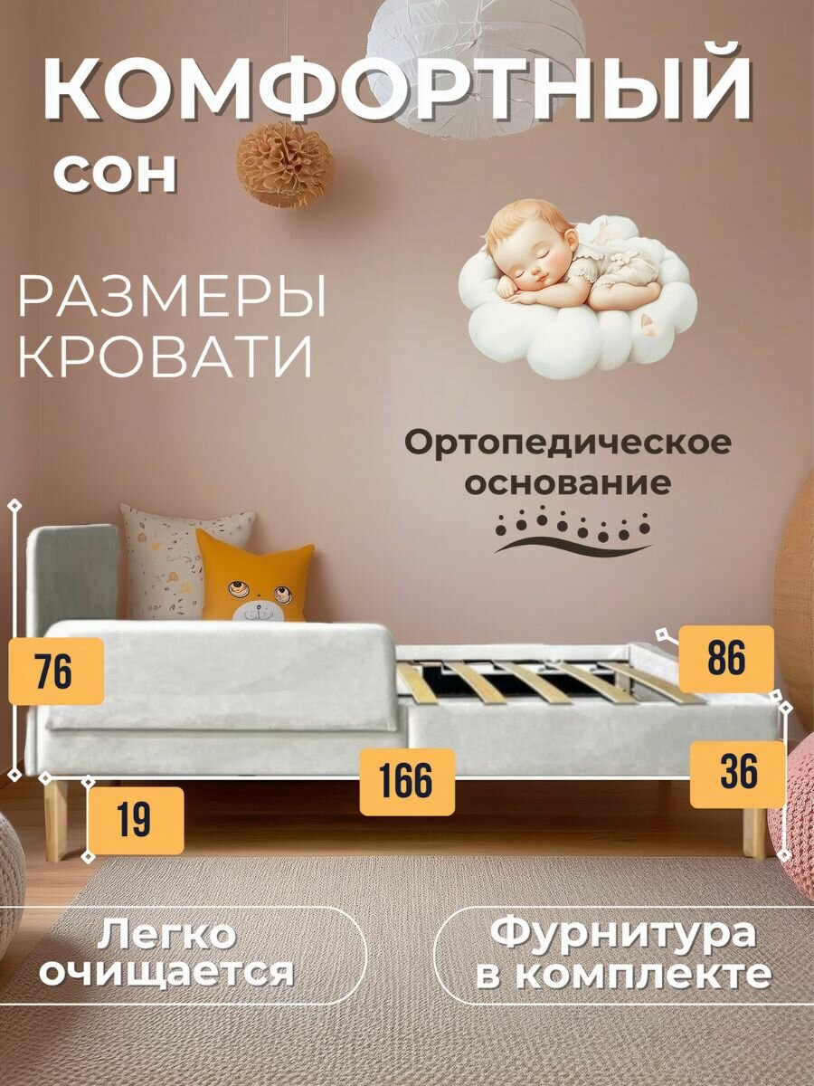 Кровать детская "SOFT" односпальная 160*80 с бортиком бежевая информация: