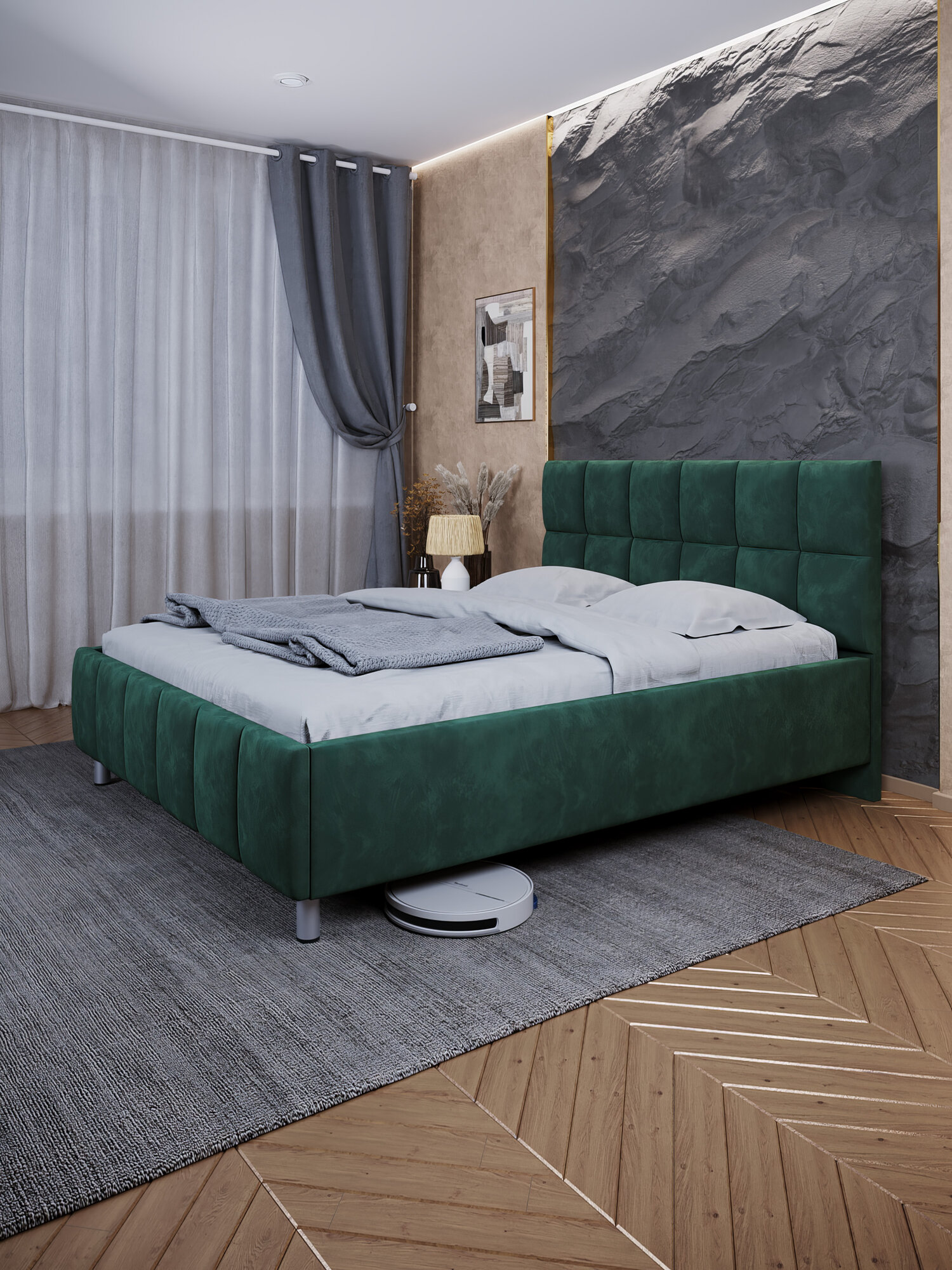 Двуспальная кровать Эстель 140 с подъёмным механизмом и ортопедическим основанием цвет Темный изумруд информация: