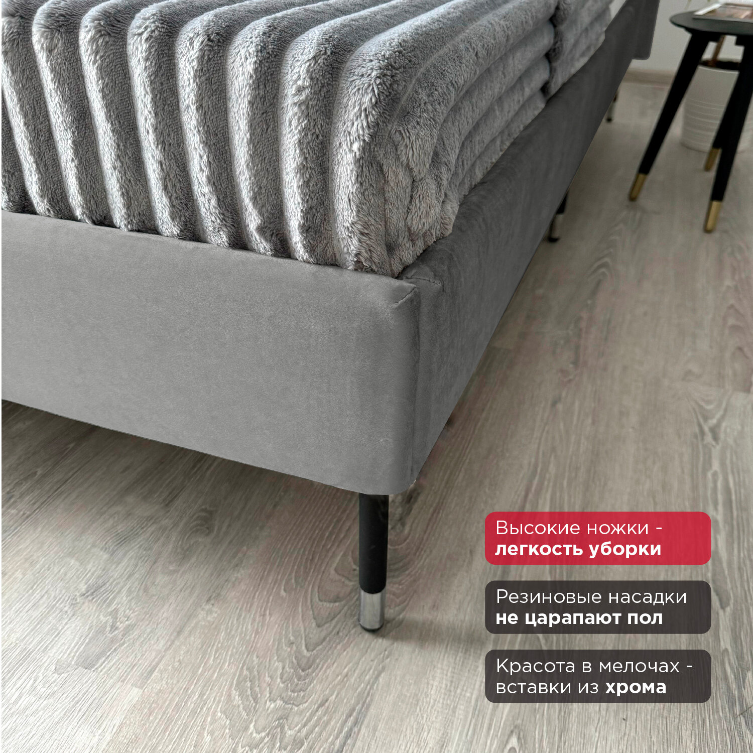 Кровать Redsofa Сити серый Шайн / ножки хром 140х200 с ортопедическим основанием информация: