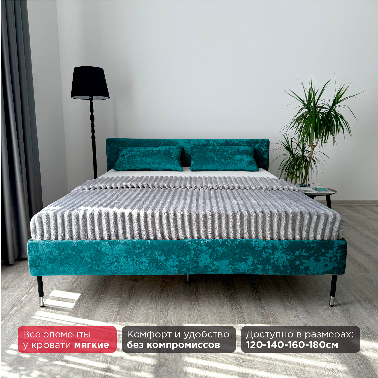 Кровать Redsofa Сити бирюзовый Teddi / ножки хром 140х200 с ортопедическим основанием 22 310 ₽