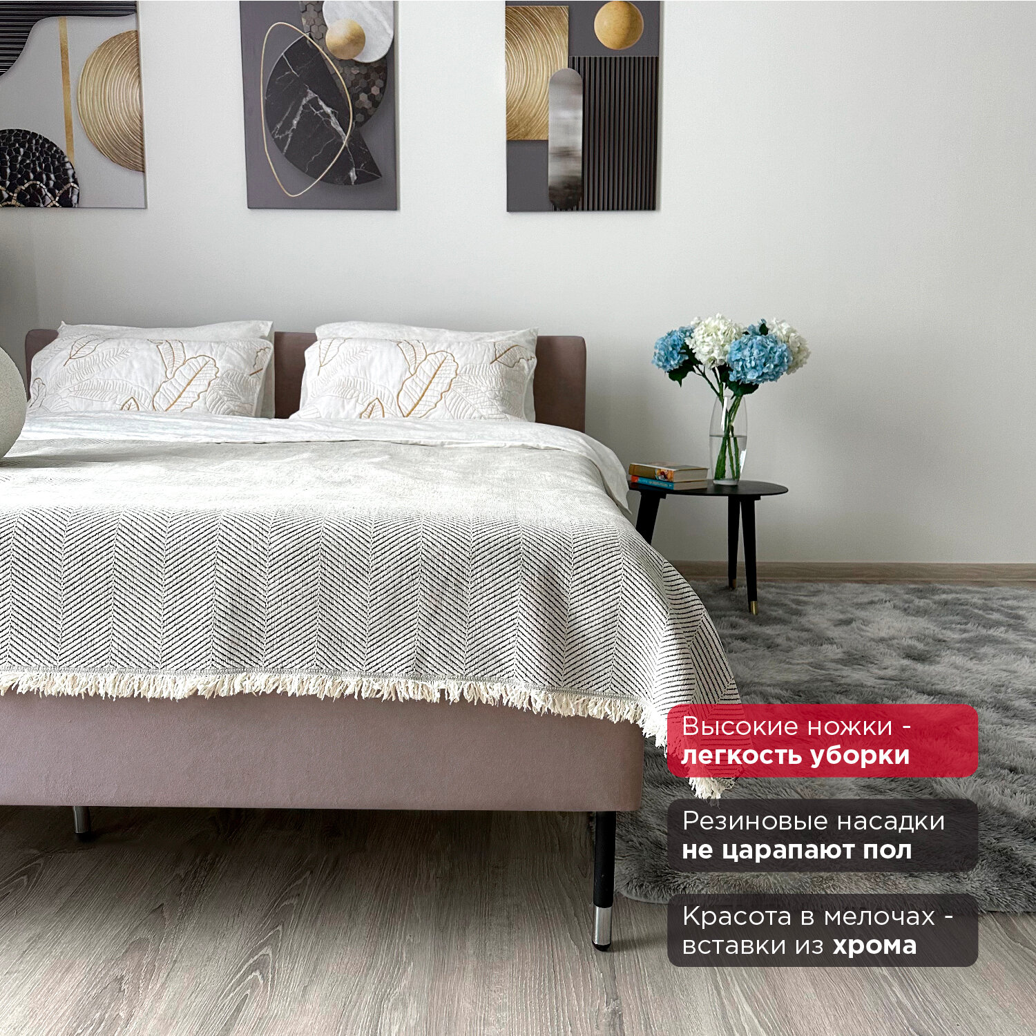 10 цен на Кровать Redsofa Сити темно-бежевый Teddi / ножки хром 140х200 с ортопедическим основанием