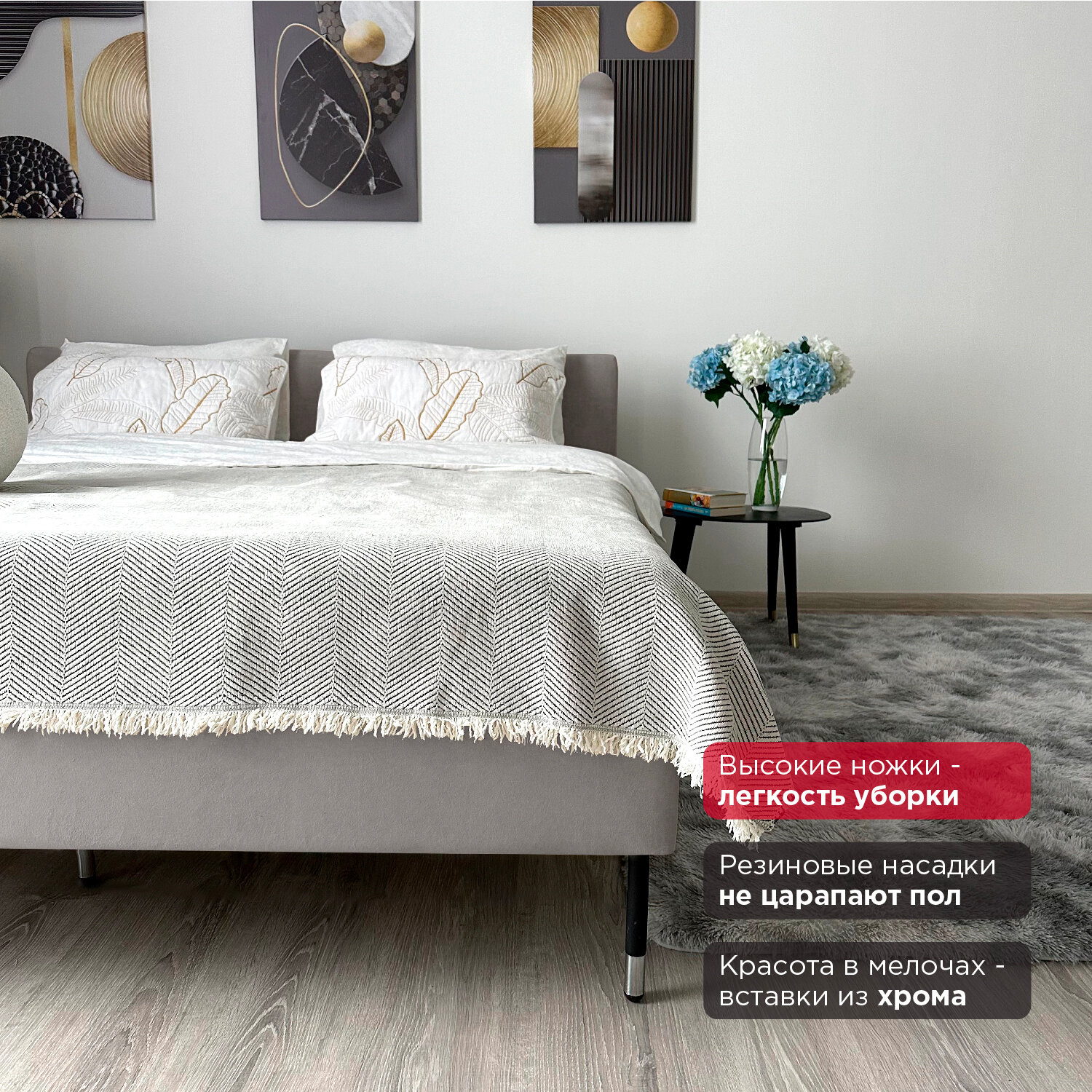 Кровать Redsofa Сити светло-серый Teddi / ножки хром 140х200 с ортопедическим основанием информация: