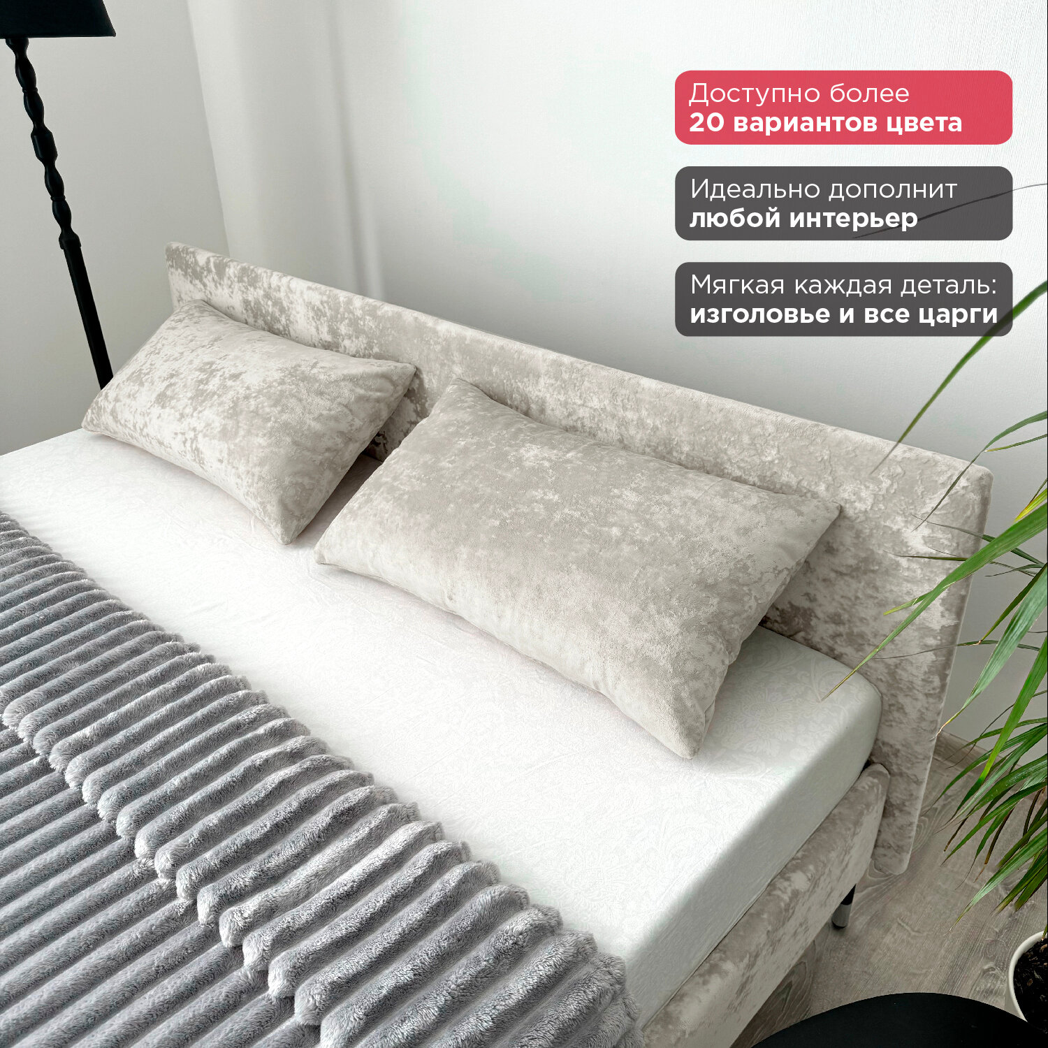 Кровать Redsofa Сити серебряный Шайн / ножки хром 180х200 с ортопедическим основанием 24 170 ₽