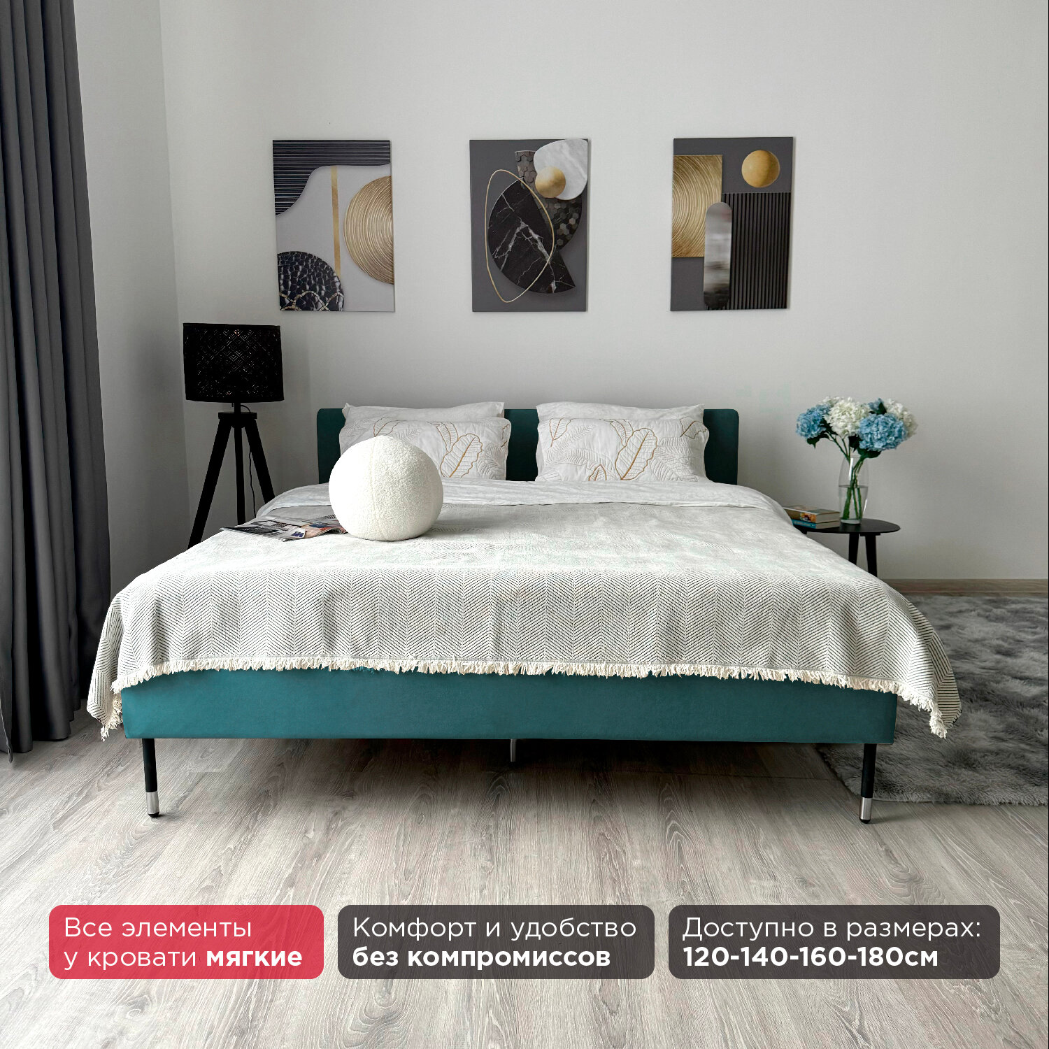 10 цен на Кровать Redsofa Сити бирюзовый Teddi / ножки хром 140х200 с ортопедическим основанием
