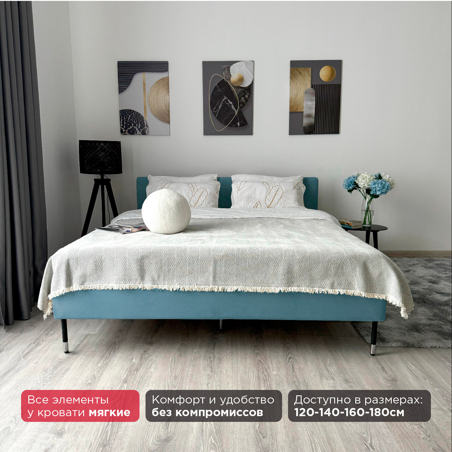 Кровать Redsofa Сити аквамарин Ocean / ножки хром 140х200 с ортопедическим основанием 23 240 ₽