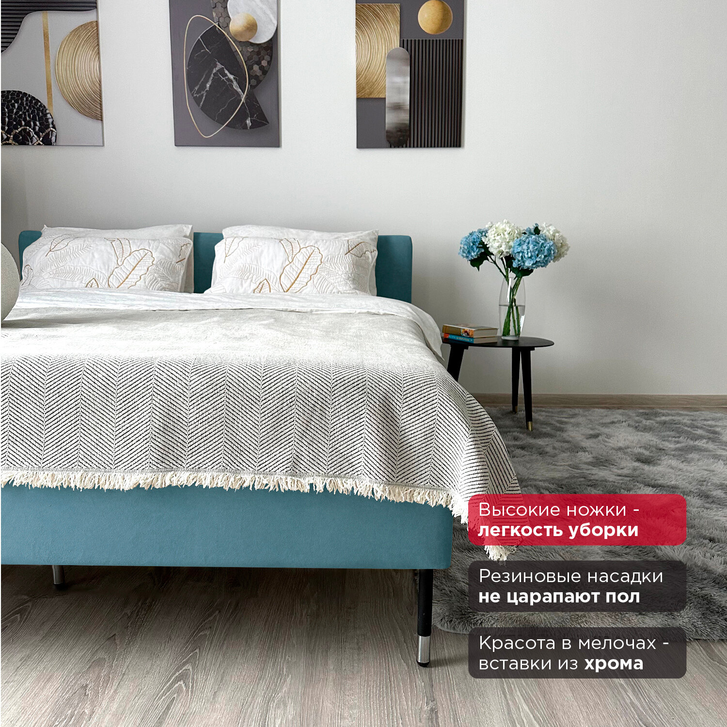 Кровать Redsofa Сити бирюзовый Teddi / ножки хром 180х200 с ортопедическим основанием 25 100 ₽