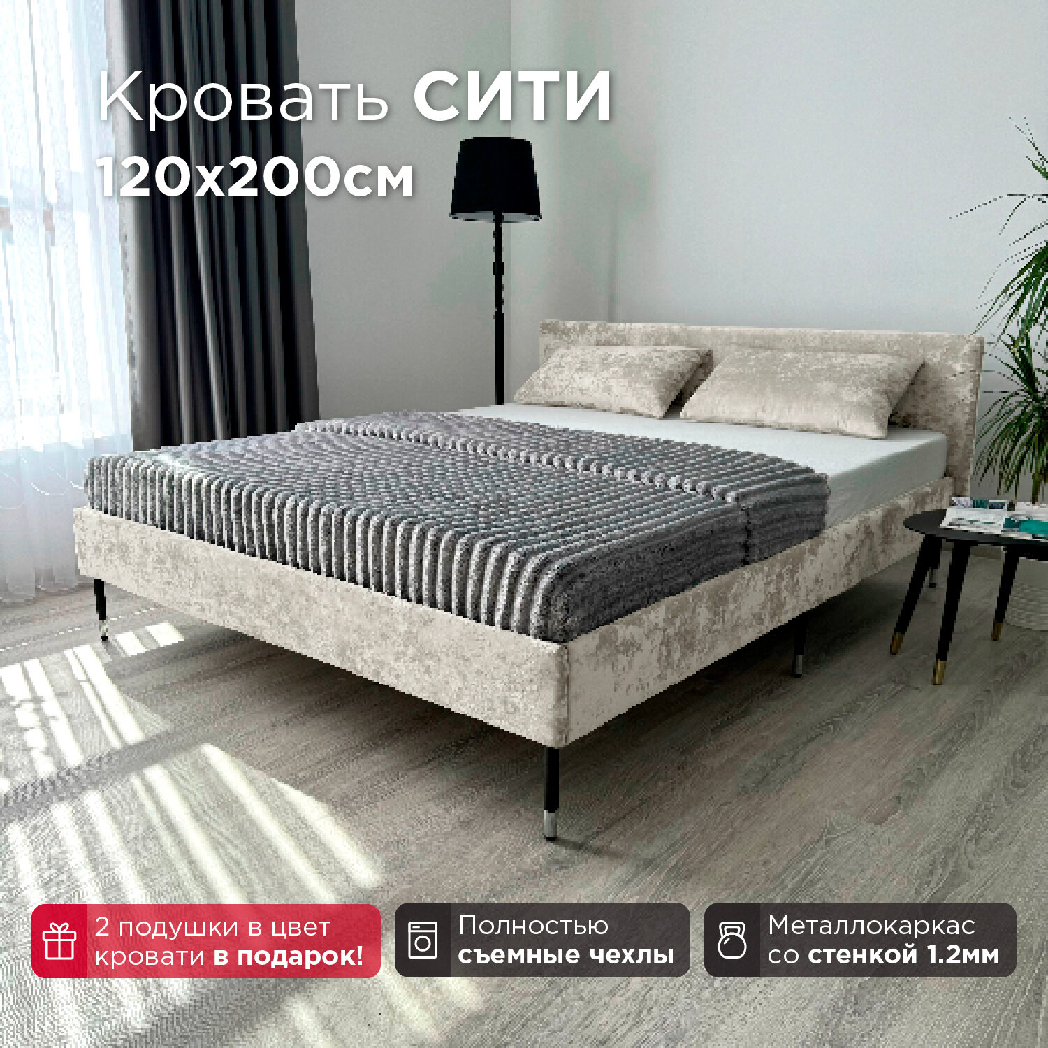 Кровать Redsofa Сити темно-бежевый Шайн / ножки хром 120х200 с ортопедическим основанием 20 450 ₽