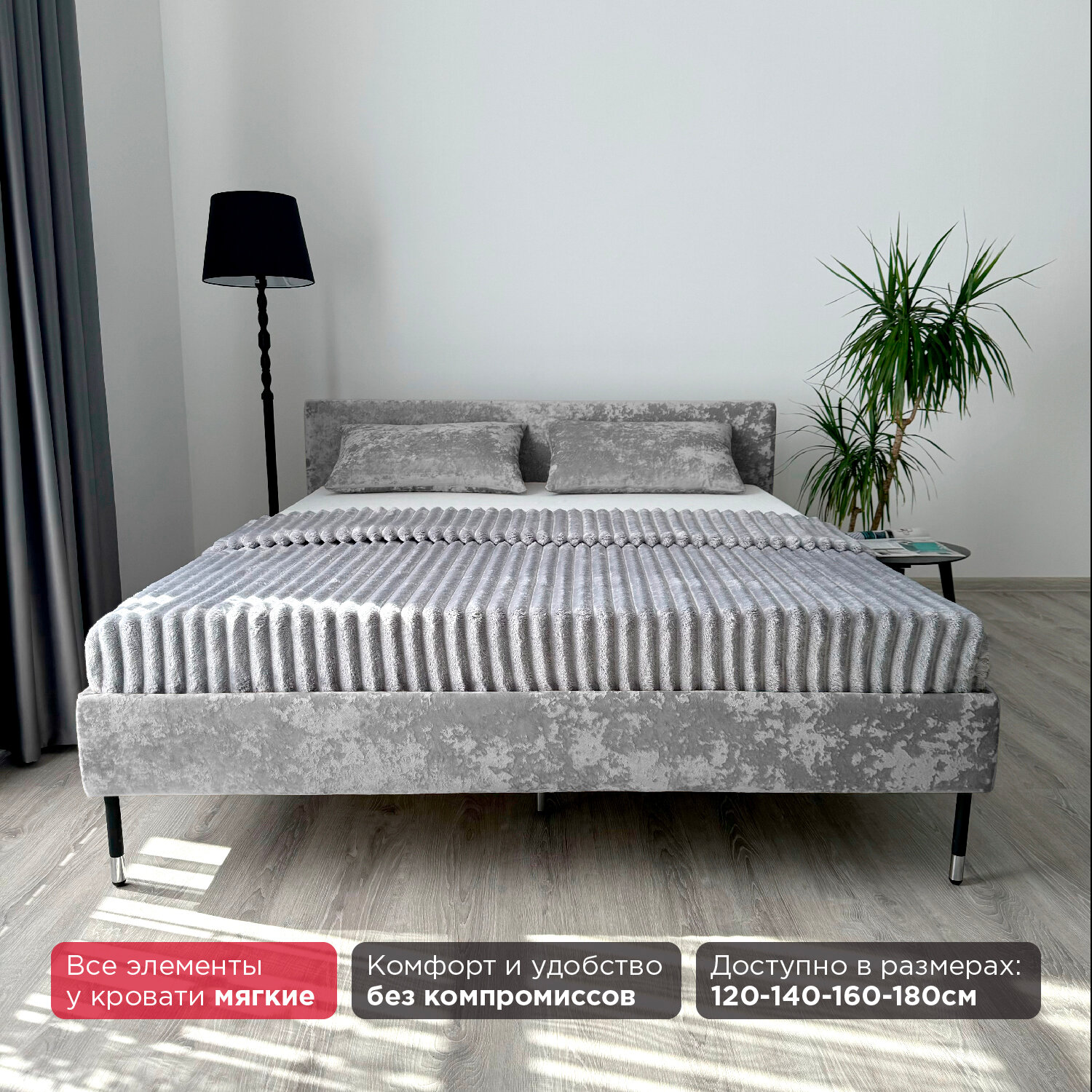 Кровать Redsofa Сити серый Шайн / ножки хром 140х200 с ортопедическим основанием 21 380 ₽