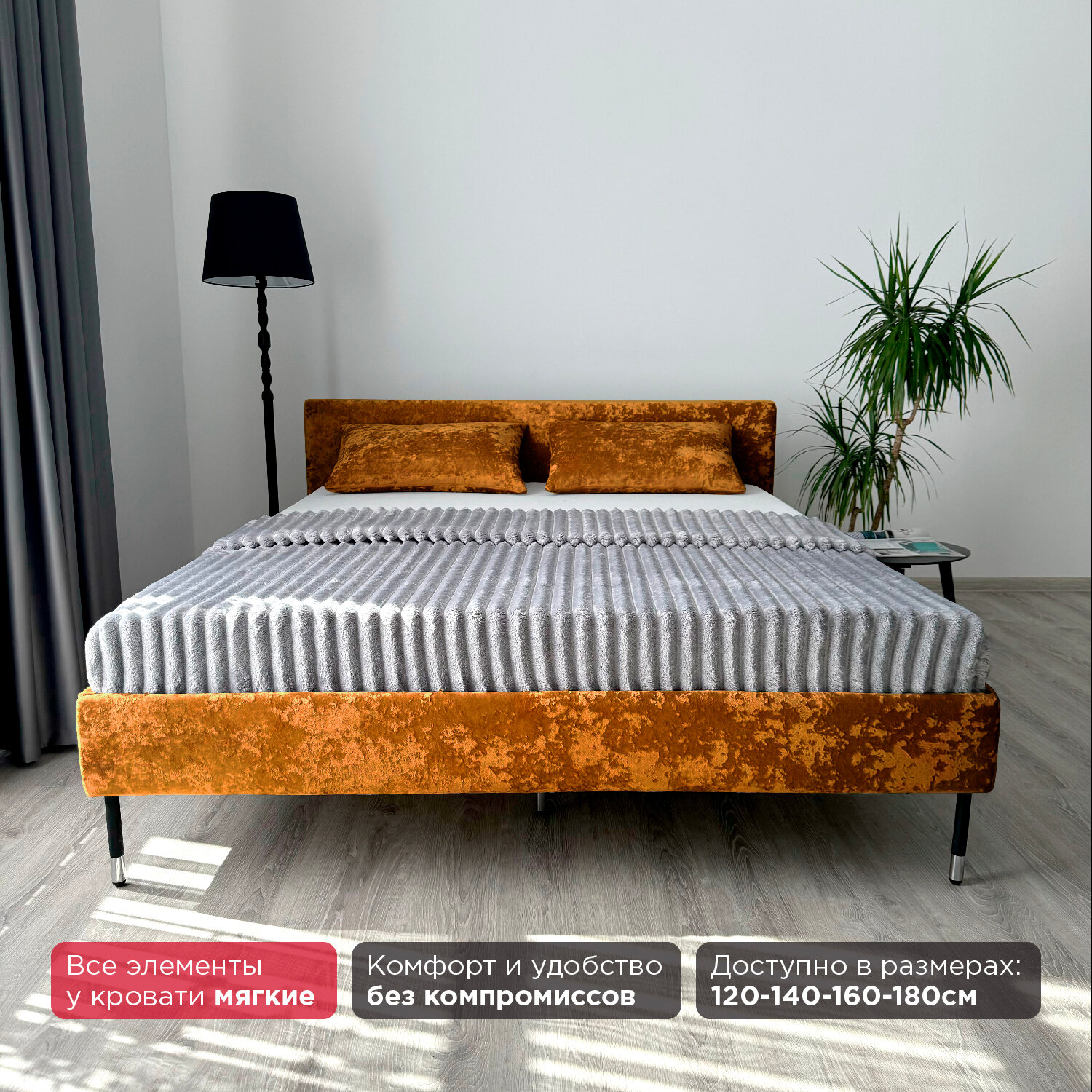 Кровать Redsofa Сити золотой Шайн / ножки хром 140х200 с ортопедическим основанием 20 231 ₽