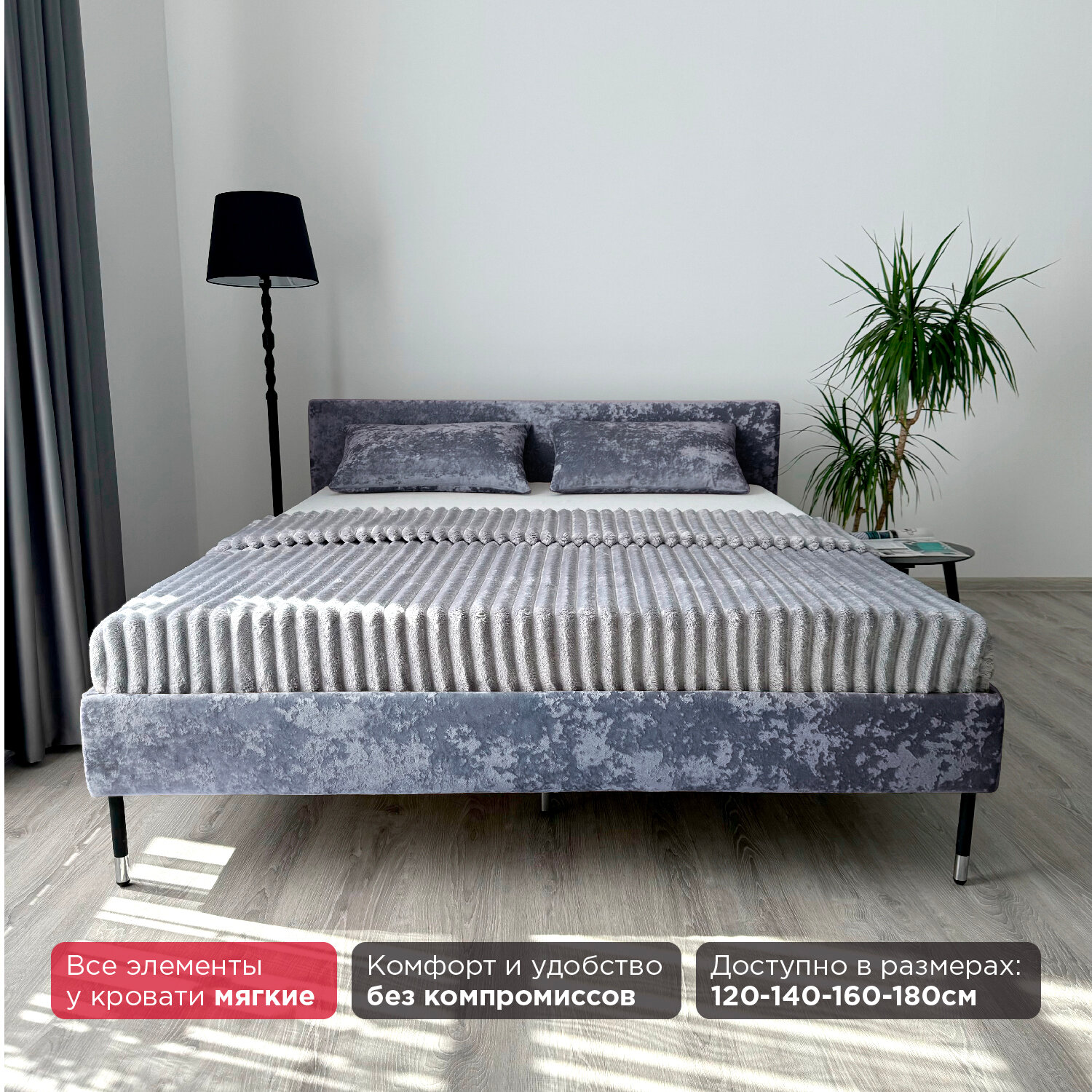 Кровать Redsofa Сити серый Шайн / ножки хром 140х200 с ортопедическим основанием 21 380 ₽