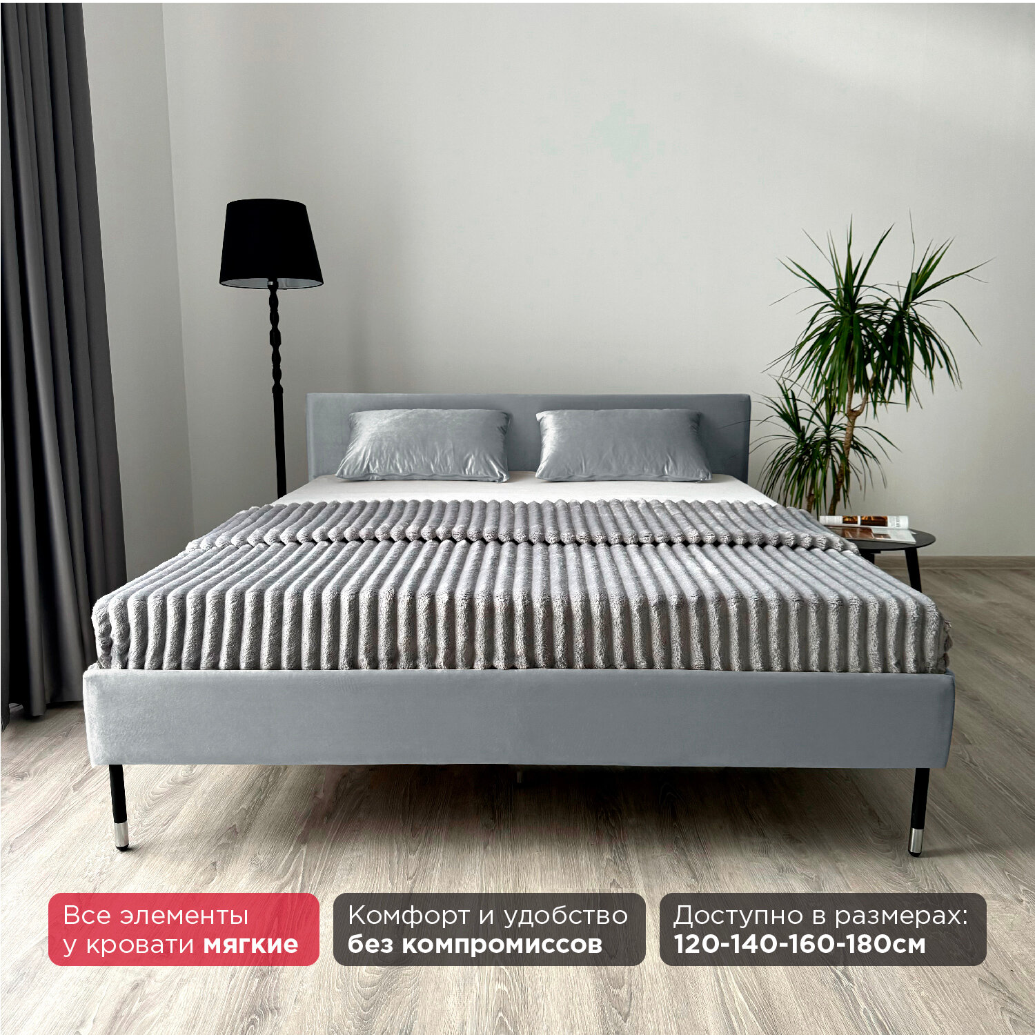 Кровать Redsofa Сити серый Ocean / ножки хром 180х200 с ортопедическим основанием 26 960 ₽