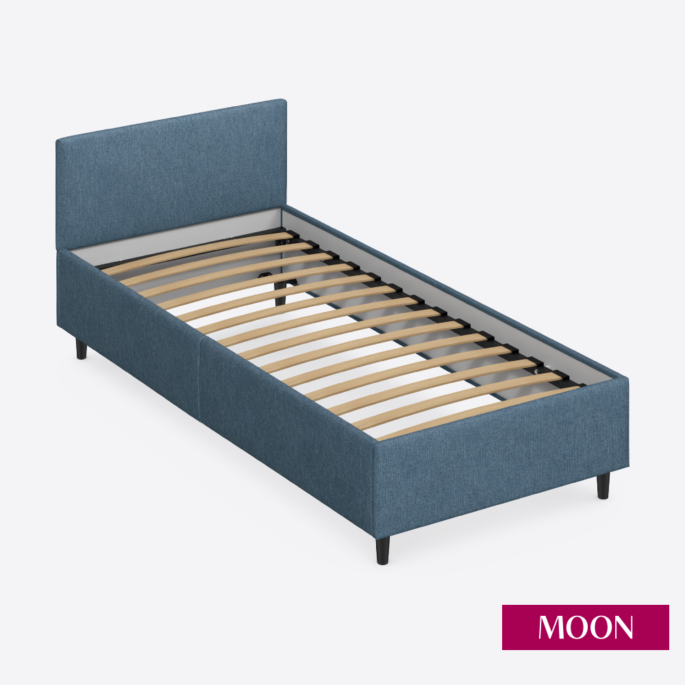 Кровать односпальная без подъёмного механизма на ножках, MOON FAMILY 1250, размер 90х200 см, рогожка синяя. Ортопедическое основание в комплекте информация: