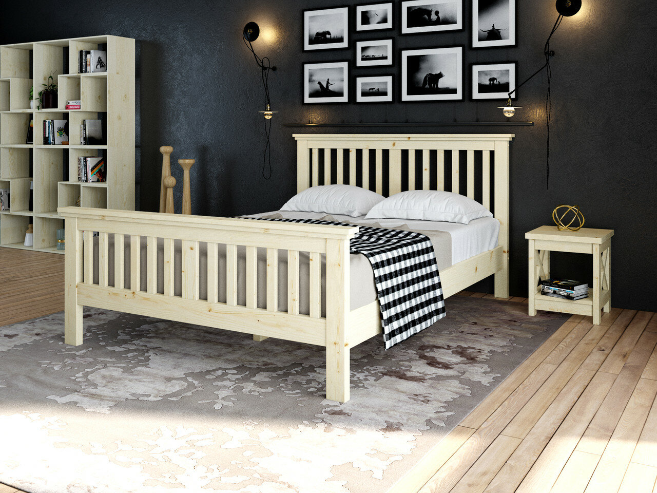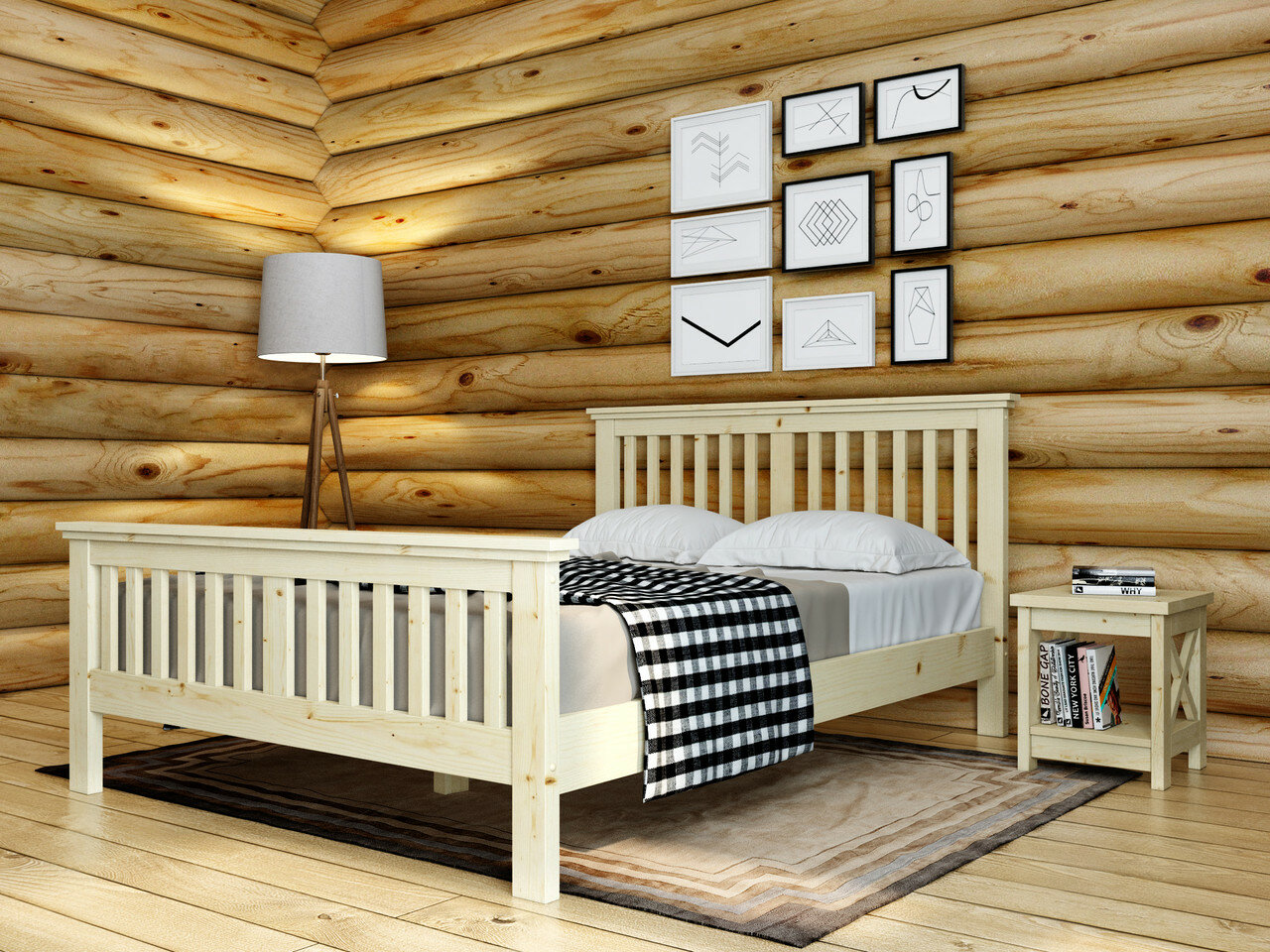 Двуспальная кровать 140х200 Фаби деревянная, из сосны, цвет Палисандр